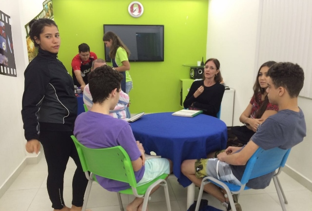 Ao final da atividade, uma de nossas alunas foi surpreendida pelo pedido para gravar um depoimento sobre sua experiência na inFlux e seus planos para o futuro. Ela deu seu melhor e, apesar do nervosismo, gravou o vídeo todo em inglês.