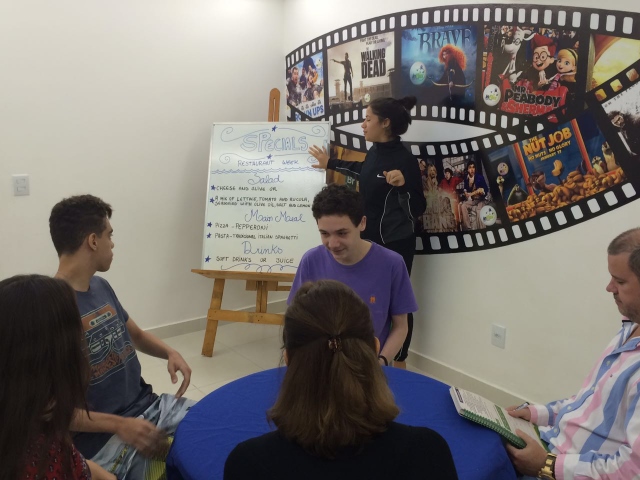 As aulas têm como foco possibilitar ao estudante vivenciar situações comuns de comunicação, além de oferecer a oportunidade de exercitar o idioma de maneira prática, com diálogos e situações reais, como andar de táxi ou pedir uma comida em um restaurante.