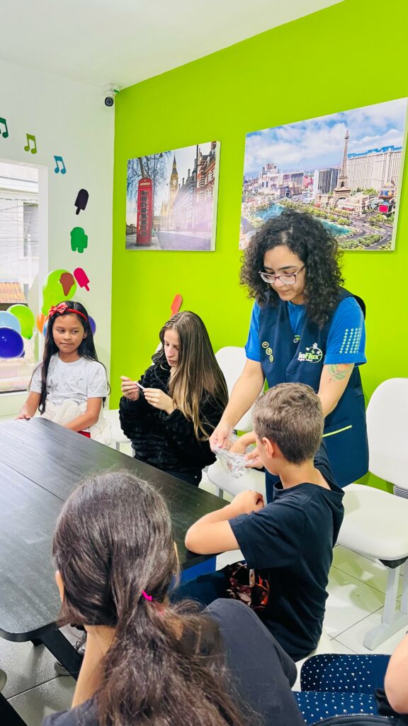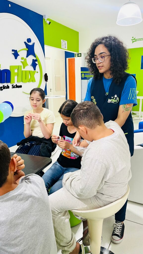 Durante a atividade, os alunos da inFlux Araucária colocaram o inglês em prática com jogos e dinâmicas, em um clima leve e animado. Para deixar a tarde ainda mais gostosa, os alunos aproveitaram picolés, ajudando a aliviar o calor e tornando a experiência ainda mais especial.