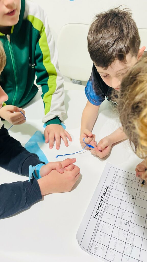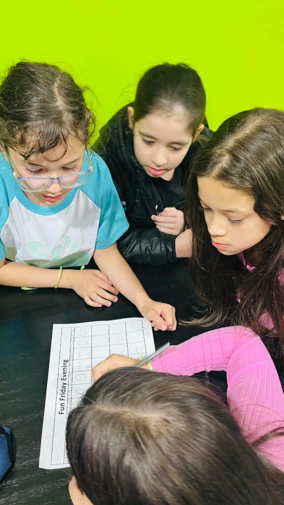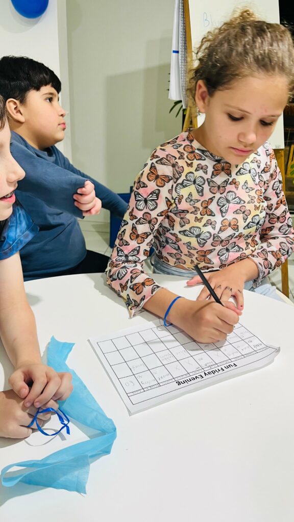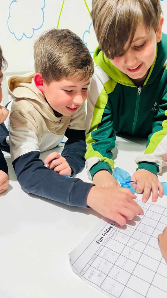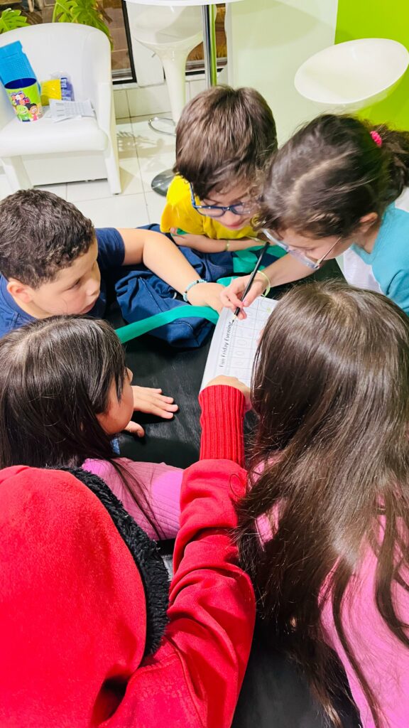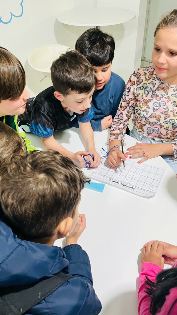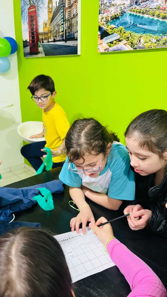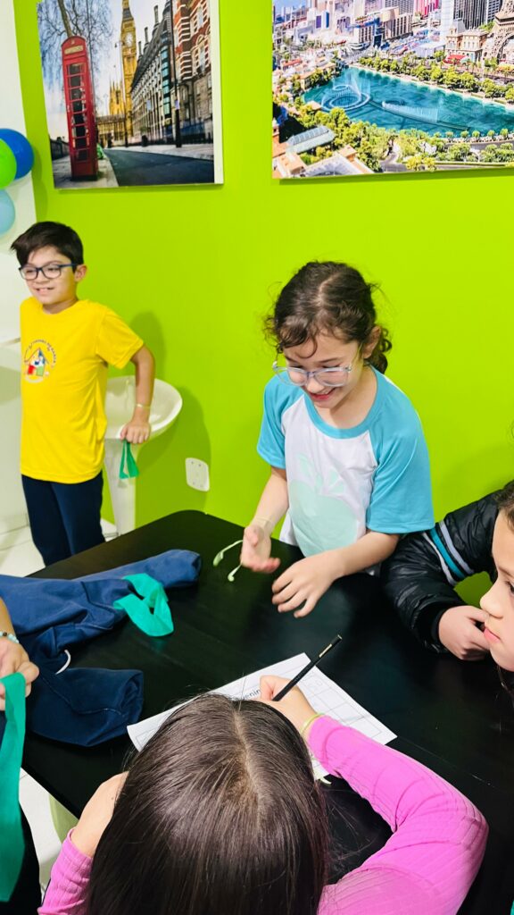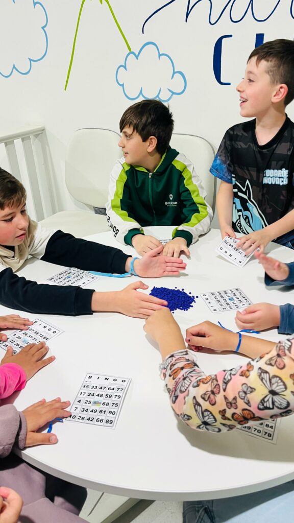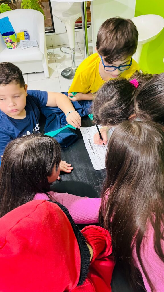 Durante a Fun Friday Evening, os alunos colocaram em prática o que aprenderam enquanto brincavam de Tic-tac-toe, Stop e Bingo. A atividade proporcionou momentos de descontração e incentivo à comunicação, com os alunos utilizando diversos chunks em inglês e demonstrando segurança ao se expressar.