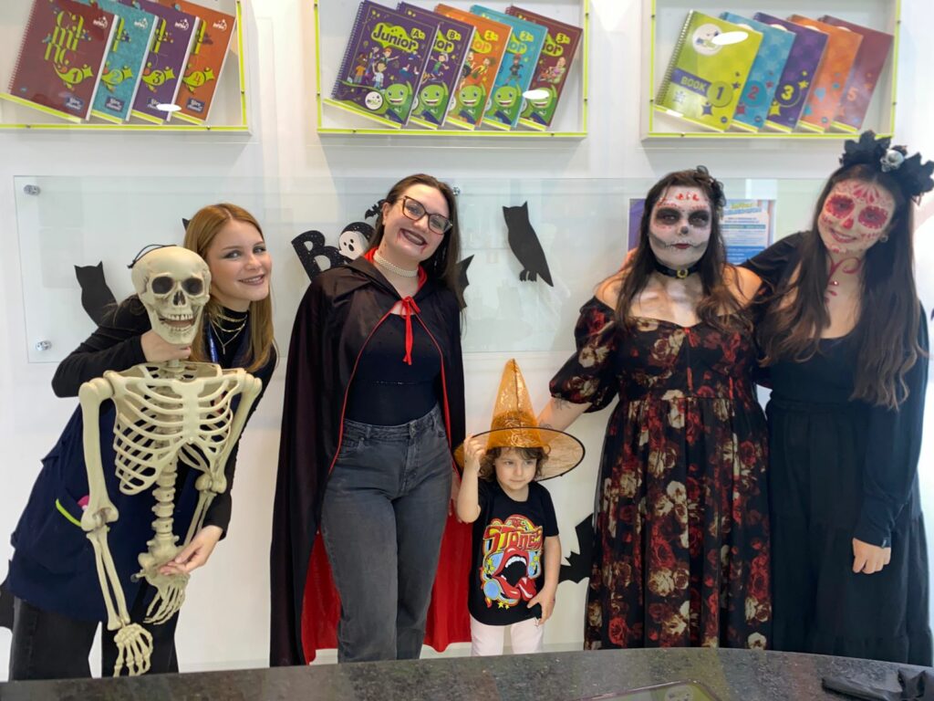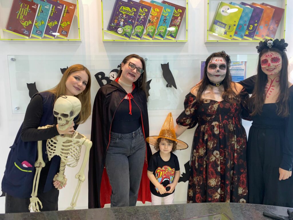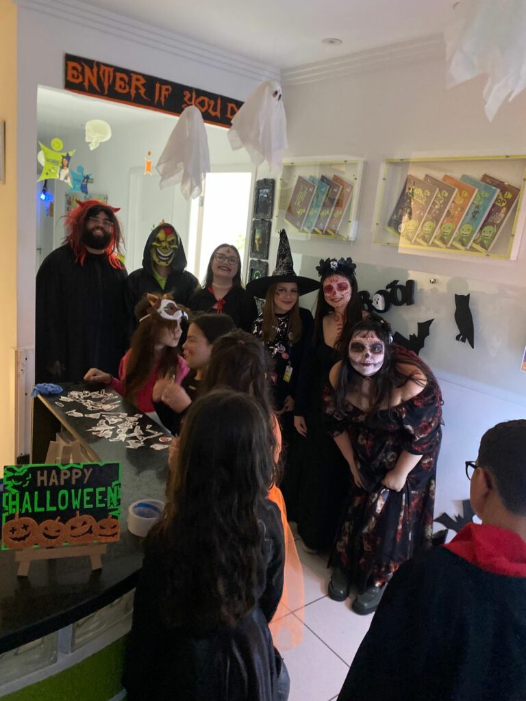 Os alunos das turmas de Kids e Juniors da inFlux Bairro Alto capricharam na fantasia e na animação e vieram curtir uma Atividade Extra especial de Halloween, aprendendo um pouco mais sobre a cultura norte-americana.