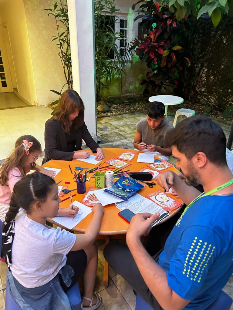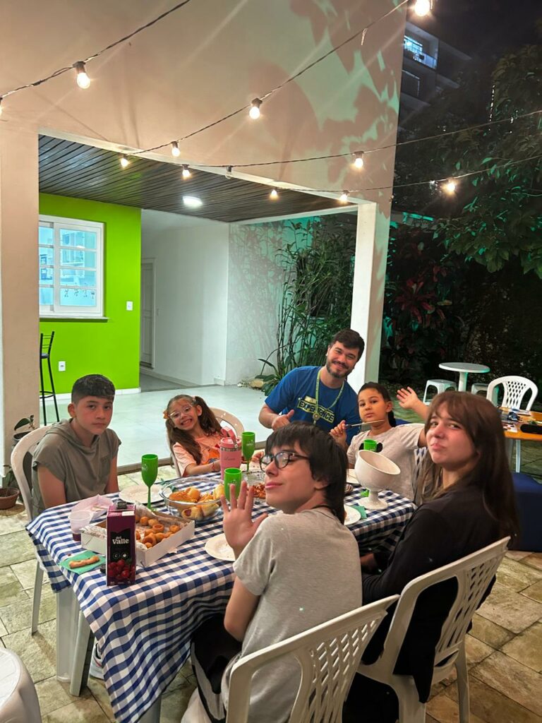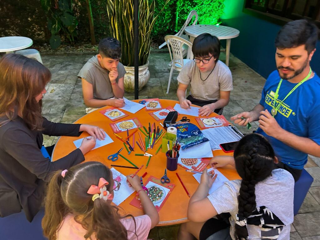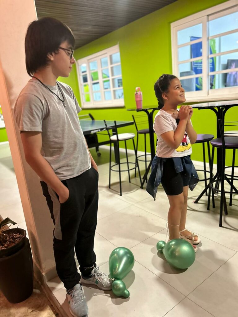 Os alunos também participaram do Turkey Tag, em que tentaram estourar a bexiga decorada de turkey dos colegas enquanto protegiam as suas. E, para finalizar, tiveram o tradicional jantar de Ação de Graças, para que pudessem experimentar o espírito do Thanksgiving, compartilhando comidas entre si e dizendo “I’m thankful for…”.