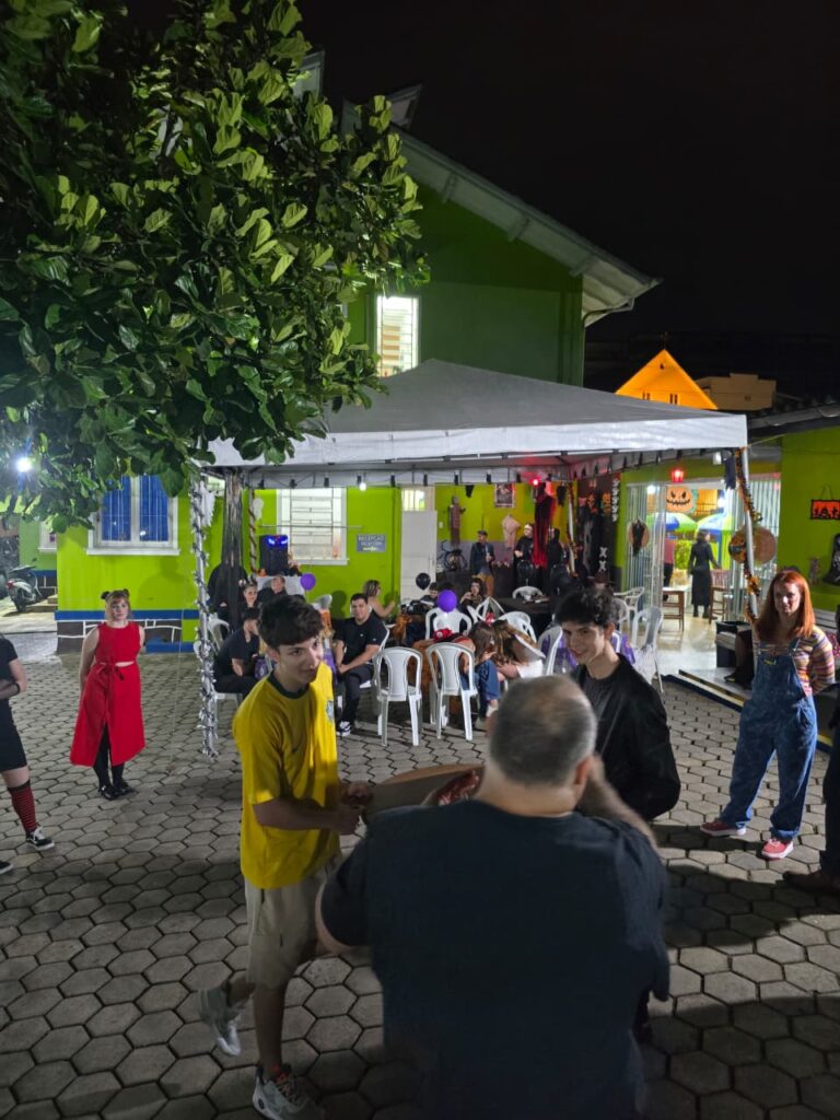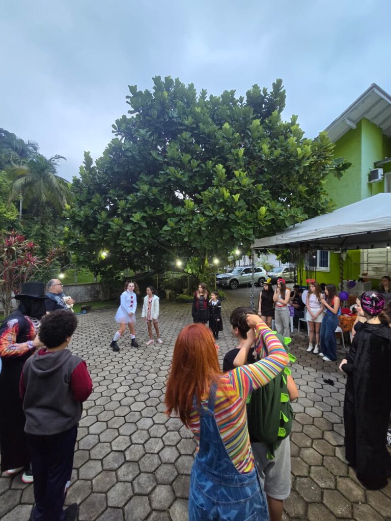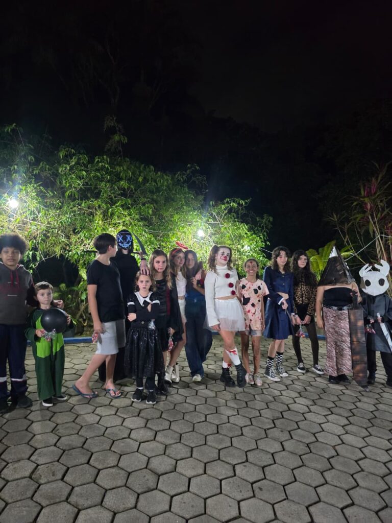 Os alunos, professores e famílias entraram no clima com fantasias incríveis — de bruxas fashion a múmias dançarinas e vampiros elegantes —, transformando a escola em um verdadeiro cenário de filme de terror (e diversão!).