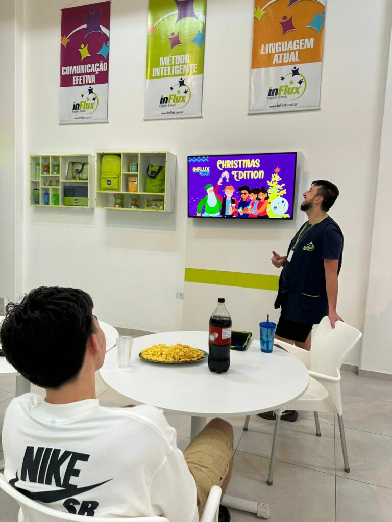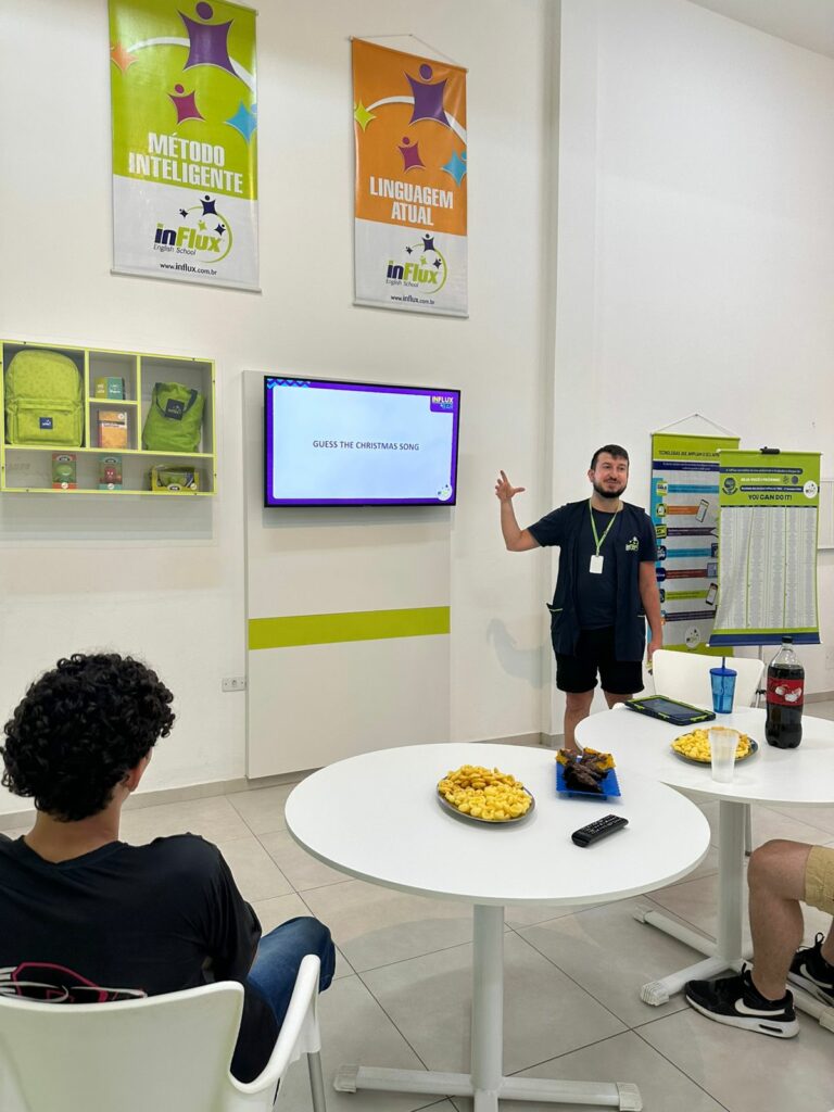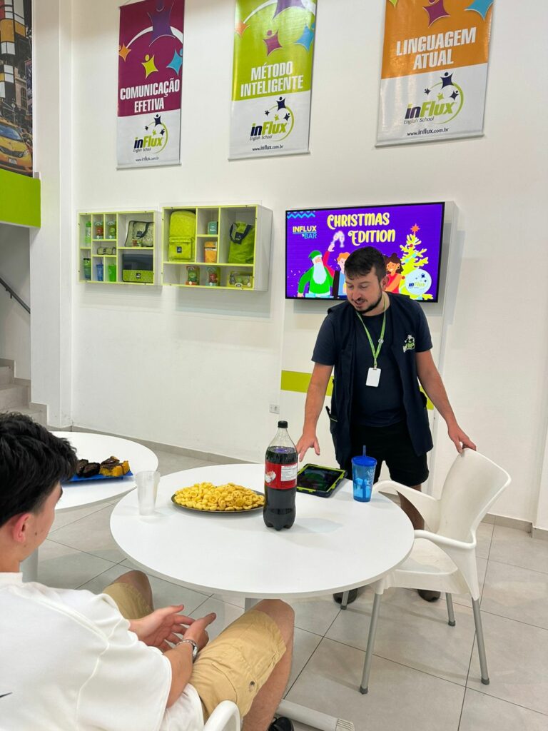 O clima natalino esteve presente na inFlux Braço do Norte durante uma Atividade Extra especial, marcada por muita diversão, interação e prática do inglês.