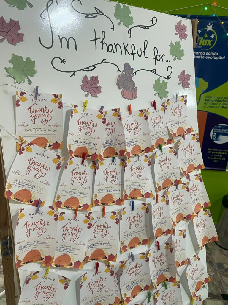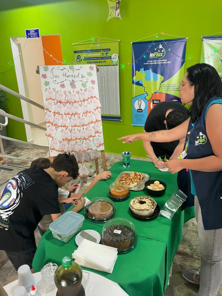 A inFlux Campinas Cambuí celebrou o Thanksgiving com um momento de gratidão. Os alunos compartilharam o que mais valorizam e desfrutaram de uma refeição preparada para tornar esse momento ainda mais especial. A unidade agradece por cada aluno fazer parte dessa trajetória.