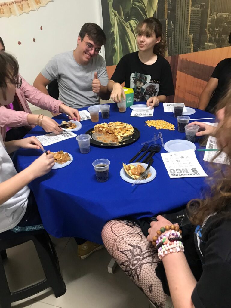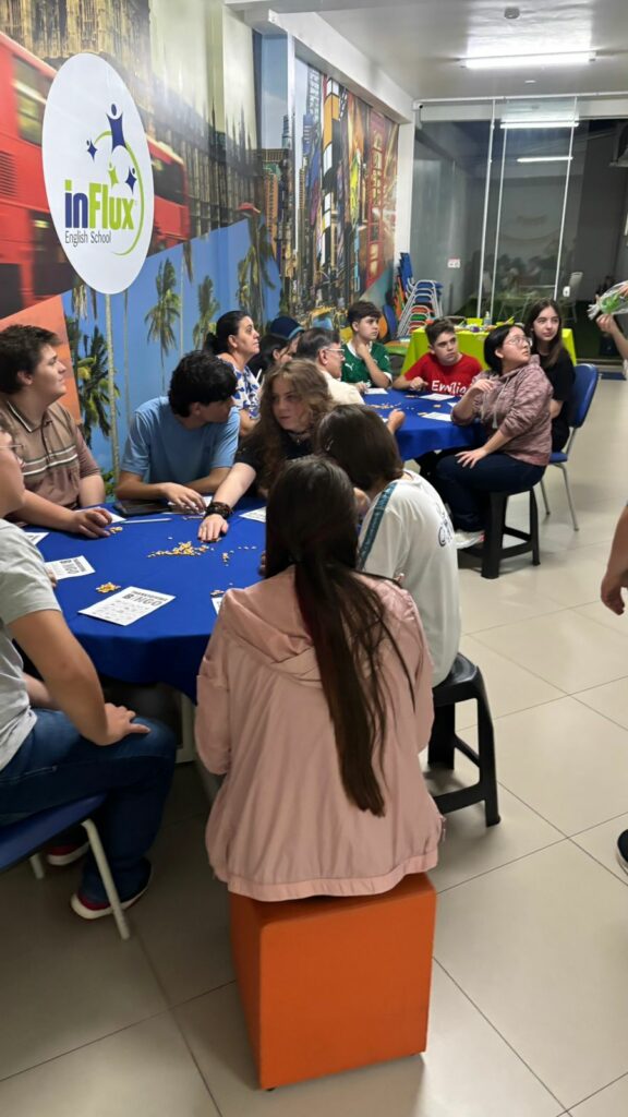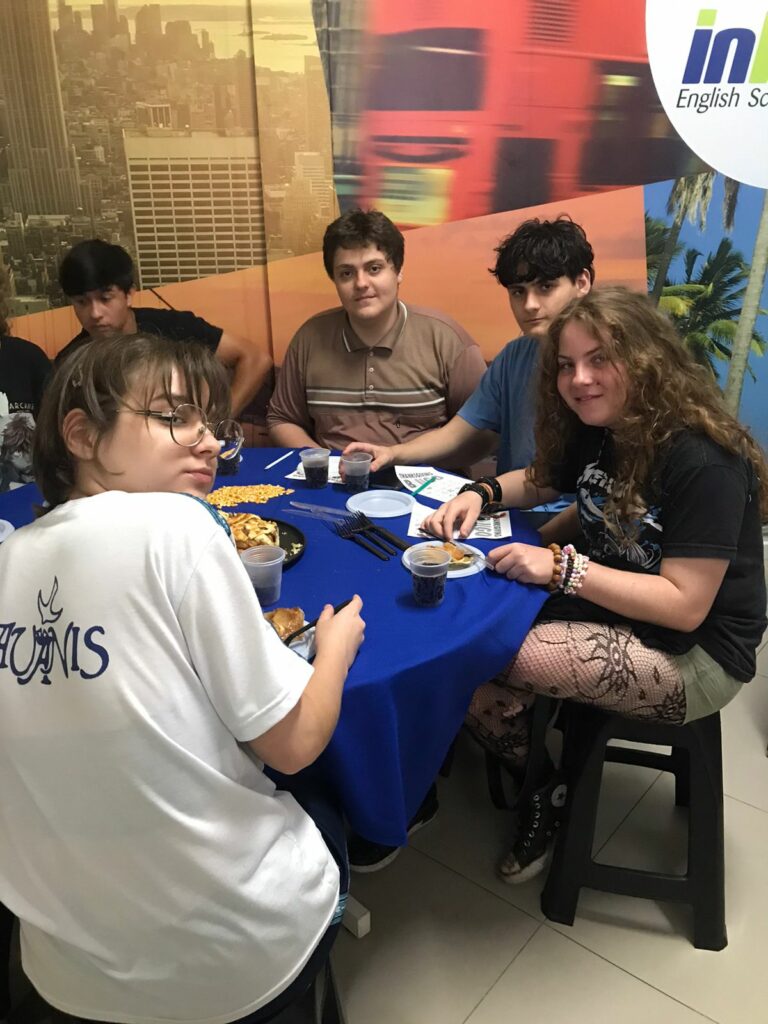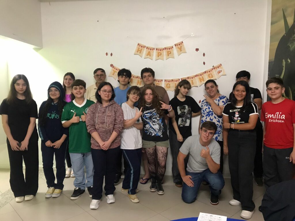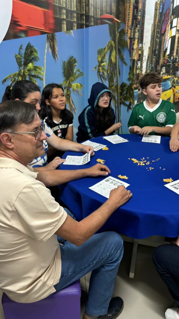 Durante a atividade, os alunos aprenderam sobre a cultura americana, praticaram vocabulário em inglês e ainda se divertiram com um bingo temático repleto de animação.