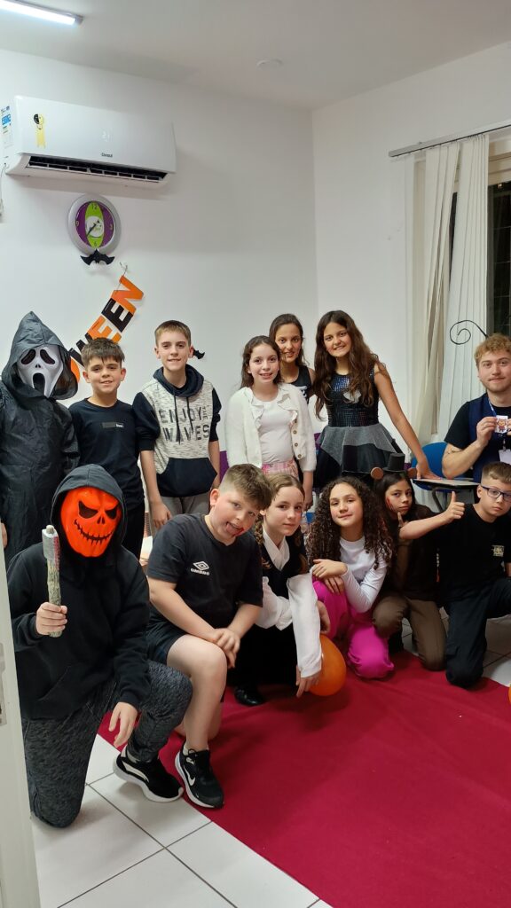 A inFlux Chapecó se transformou em um verdadeiro cenário de Halloween! As crianças dos grupos Kids e Juniors viveram uma experiência incrível, com muitas brincadeiras, dinâmicas e desafios — tudo em inglês!