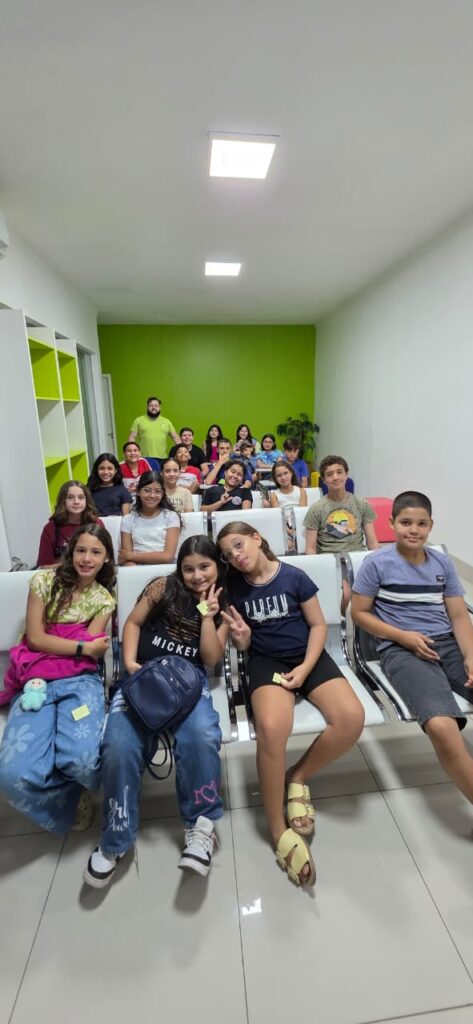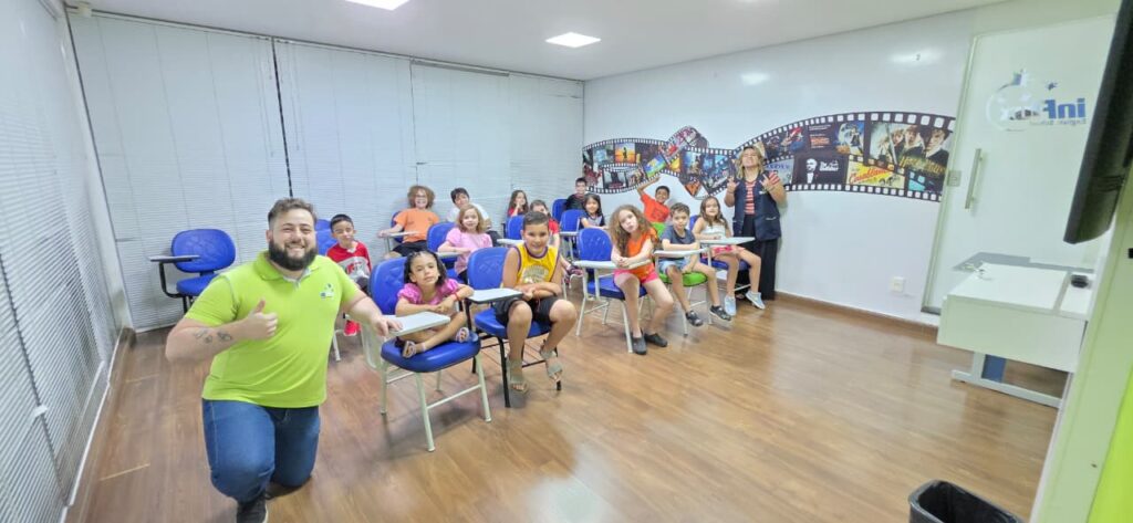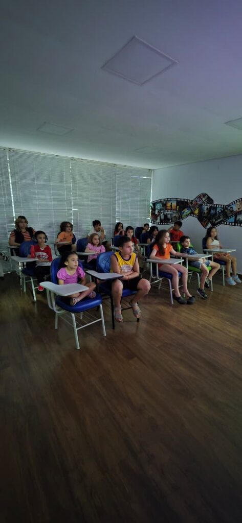 Durante o filme, não faltaram pipoca e bebidas, deixando o momento ainda mais agradável. Foi uma experiência sensacional e enriquecedora para o aprendizado do idioma, que proporcionou prática do inglês de forma divertida e envolvente.