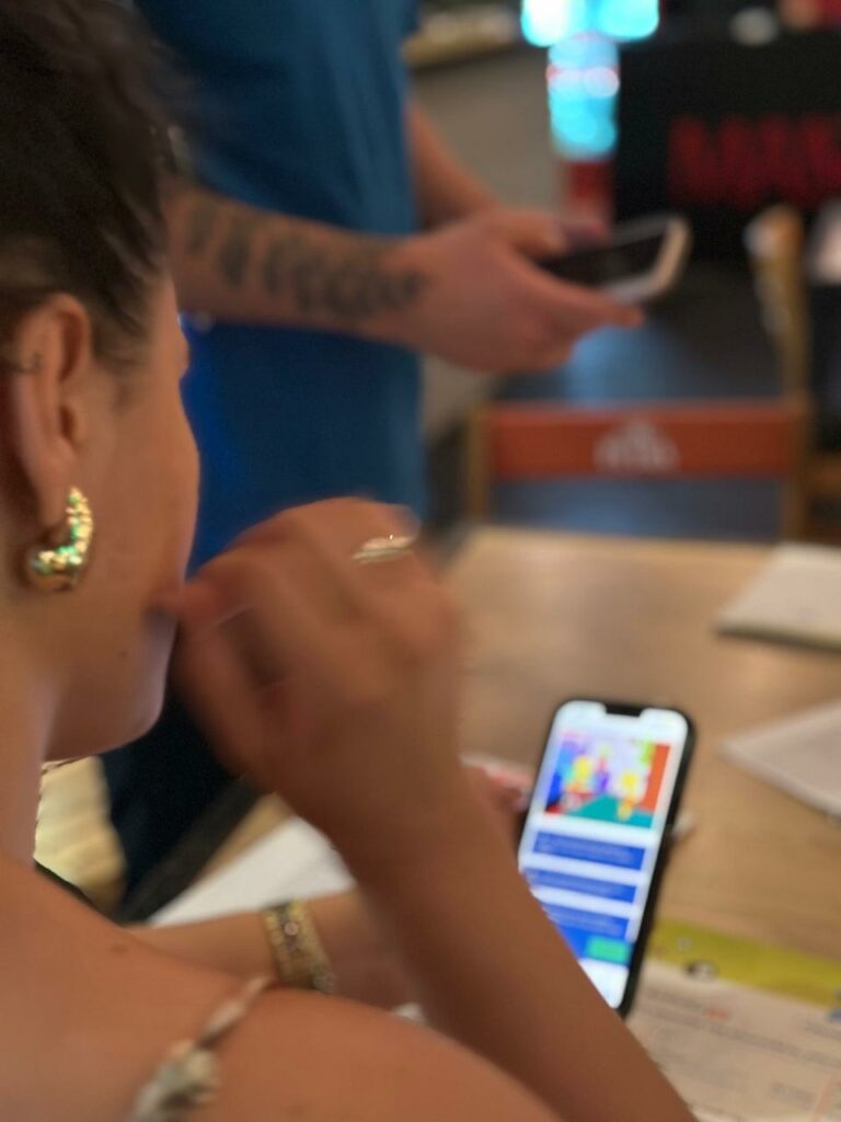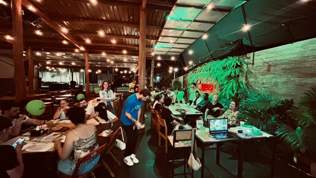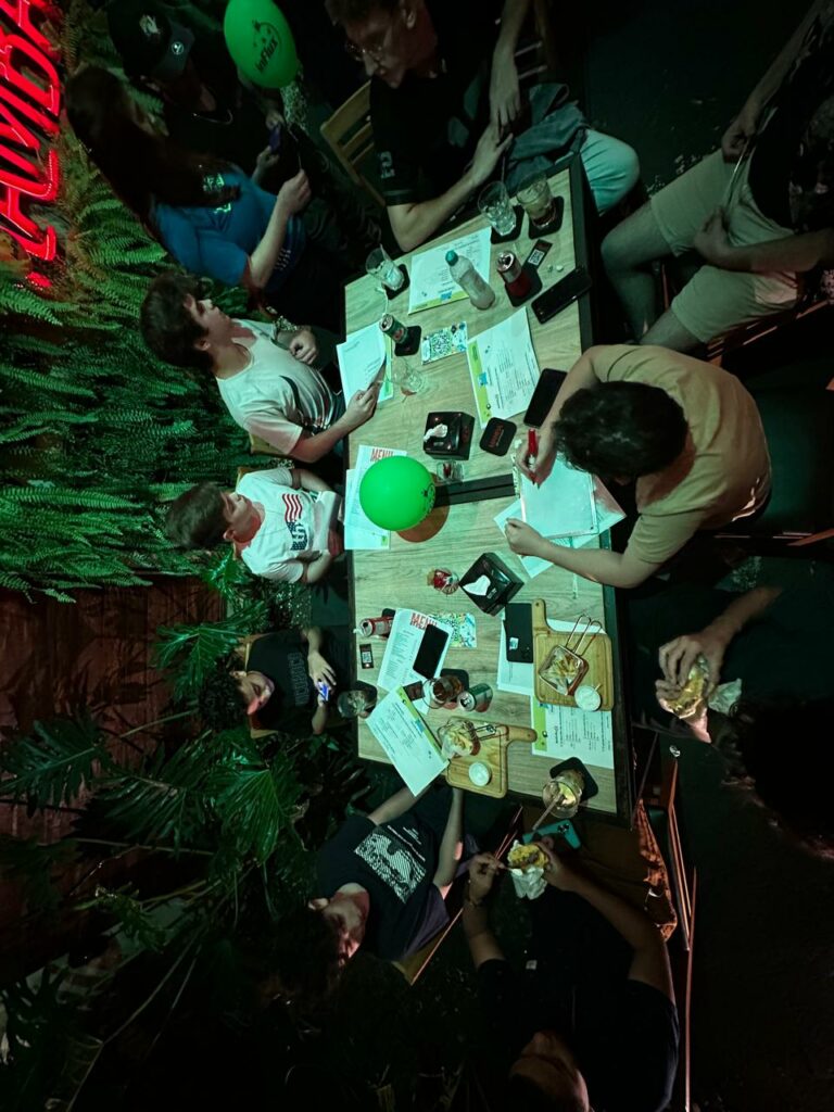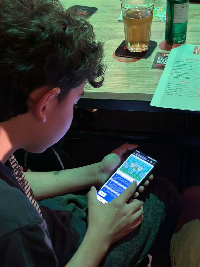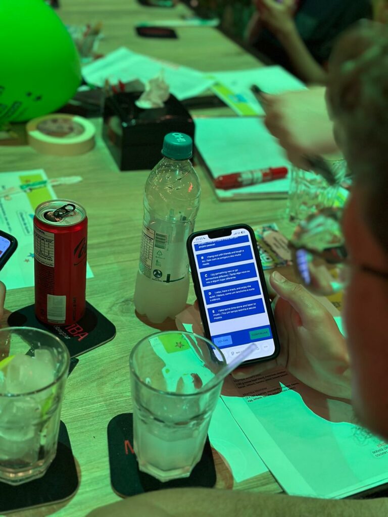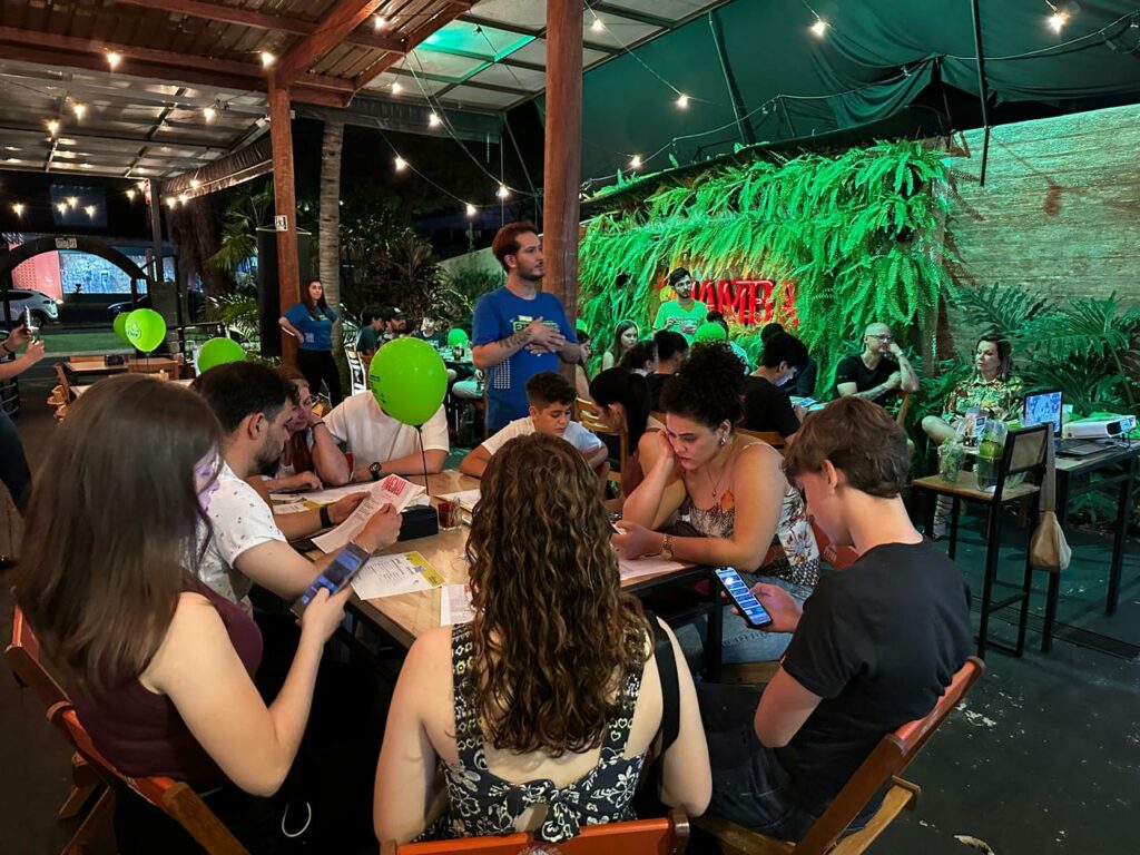 Durante a atividade, os participantes se envolveram em jogos de adivinhação, desfrutaram de uma trilha sonora especial e praticaram situações reais do cotidiano ao fazer pedidos de comida e bebida em inglês. As mesas foram divididas em equipes, criando um clima saudável de competição, no qual os grupos interagiram, disputaram pontos e demonstraram suas habilidades no idioma.