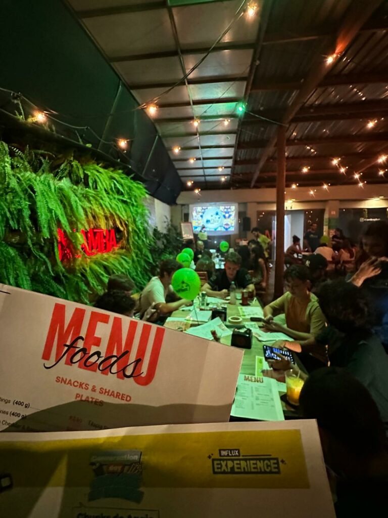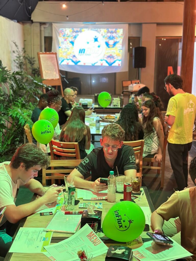 A inFlux Dourados promoveu mais uma edição do Conversation Day, realizada no Mamba Gastrobar, com o tema Cartoons and Animation. O evento reuniu alunos em um ambiente descontraído, proporcionando prática de inglês de forma natural e divertida.