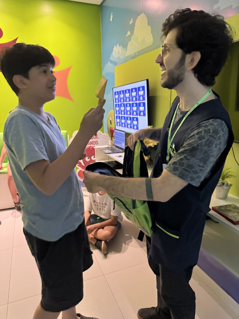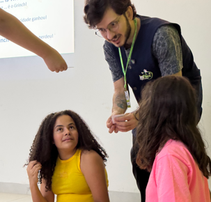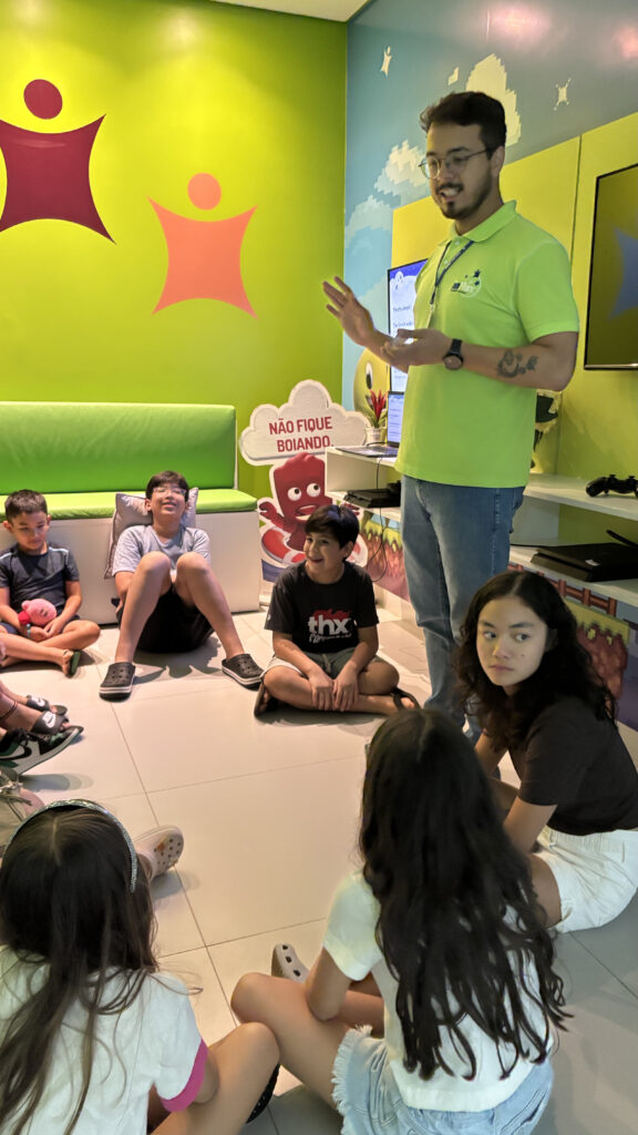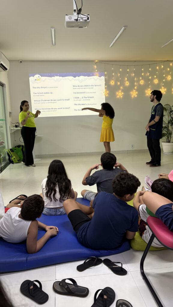 Durante a atividade, os alunos da inFlux Dourados participaram de brincadeiras interativas como The Grinch Among Us e What’s in Santa’s Bag?, vivenciando um clima de animação e mistério em jogos ambientados com personagens e elementos típicos do Natal.