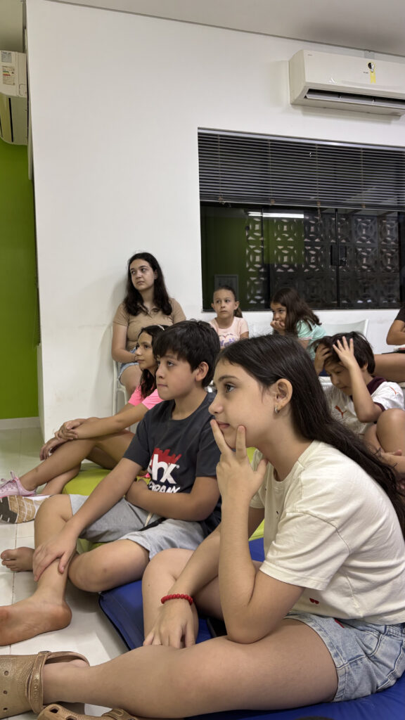 A experiência proporcionou a prática do inglês de maneira natural e envolvente, estimulando a interação e o aprendizado em um momento leve e dinâmico. A atividade foi finalizada com um lanche especial, tornando o encontro ainda mais agradável.