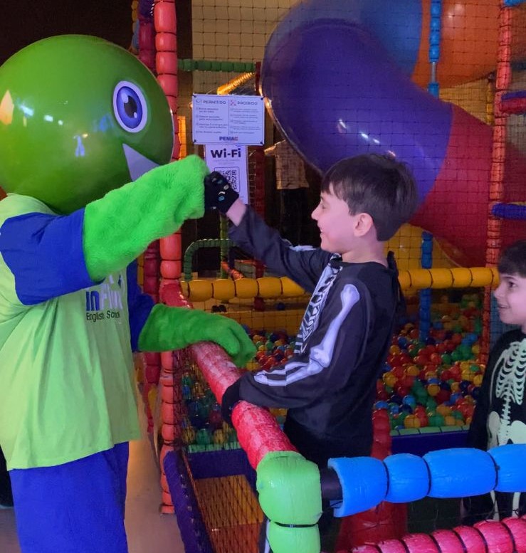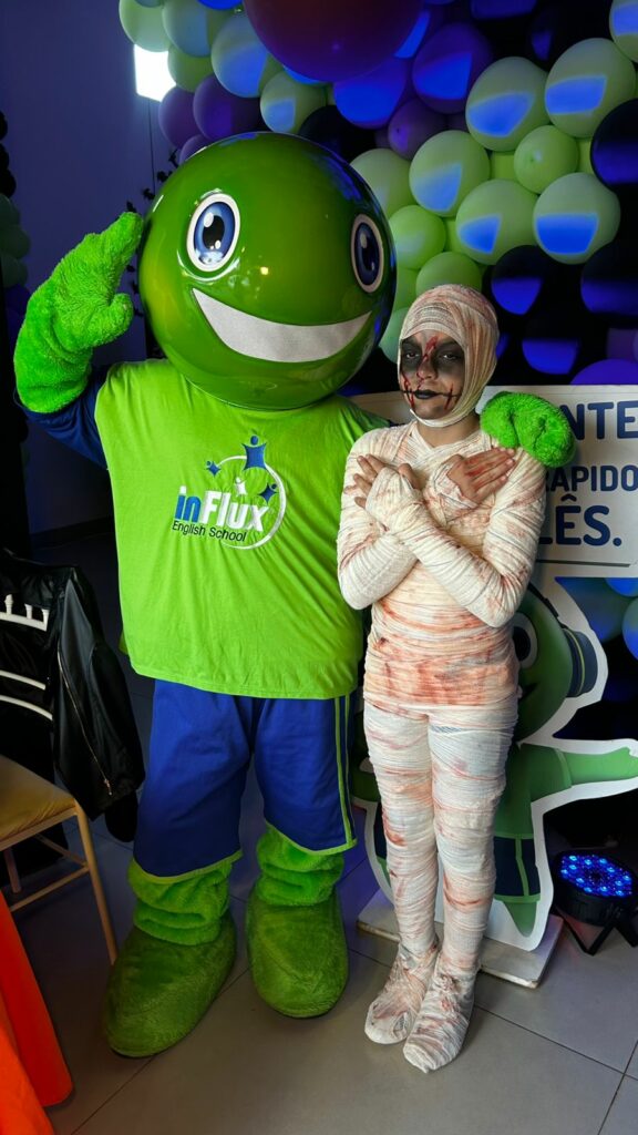 No Halloween de 2025, os alunos da inFlux Dourados puderam brincar, se fantasiar e interagir com os colegas, vivenciando uma verdadeira festinha ao estilo americano!
