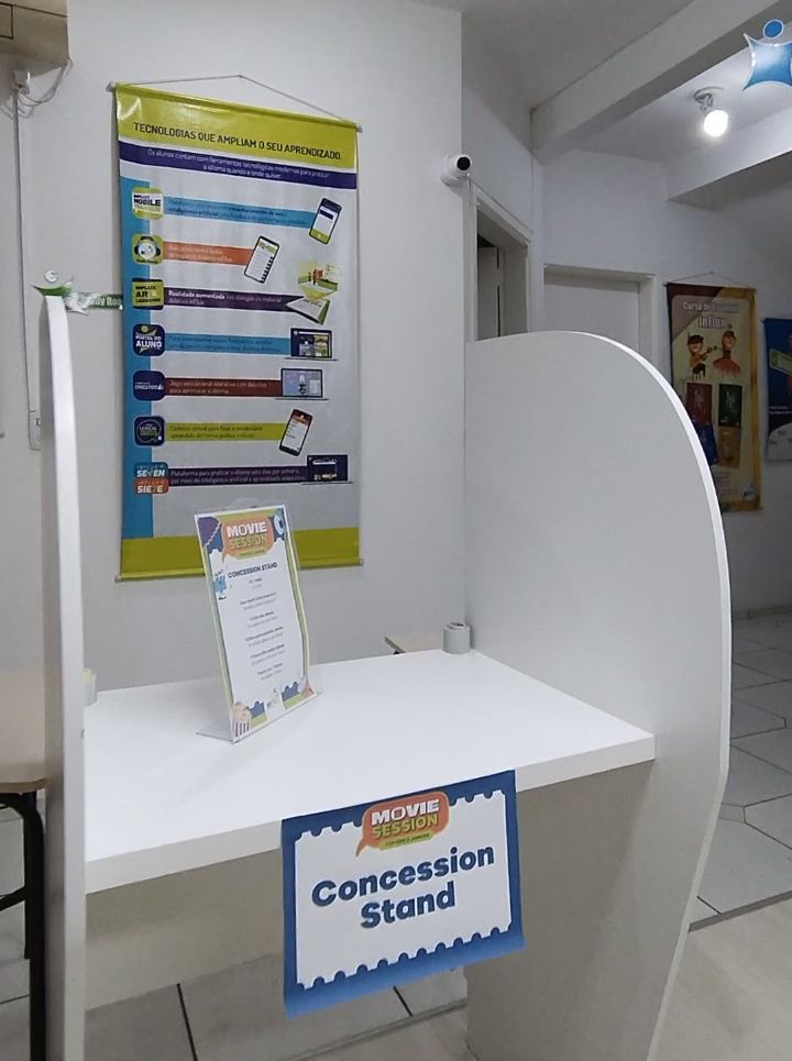 Os alunos da inFlux Frederico Westphalen participaram de uma edição especial do Movie Session, que transformou a escola em um verdadeiro cinema. Durante a atividade, as crianças praticaram inglês de forma dinâmica ao aprender e utilizar chunks relacionados à compra de ingressos, pipoca e bebidas, aplicando o conteúdo em um contexto realista e divertido.