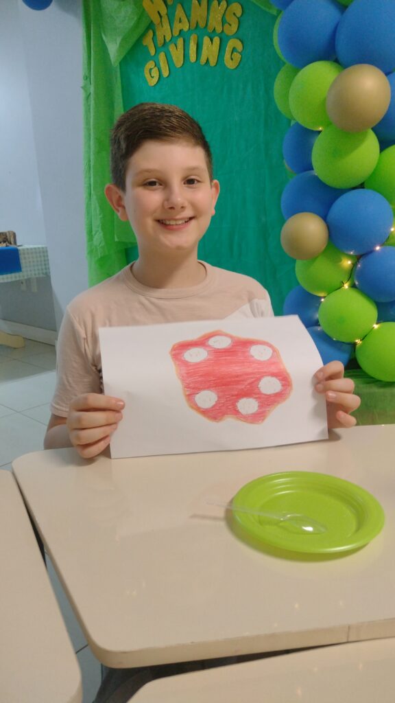 Os alunos puderam desenhar suas comidas favoritas, comer coisas gostosas, brincar com jogos divertidos e o mais importante: agradecer por tudo que aconteceu neste ano e no melhor clima de Thanksgiving encerraram a Atividade Extra aprendendo novos chunks de maneira lúdica e divertida, pois aprender inglês na inFlux é assim!