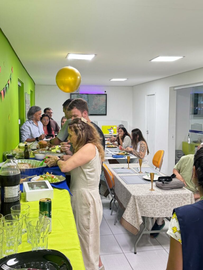 A proposta foi simples, mas poderosa: criar um ambiente em que o inglês acontecesse naturalmente, sem pressão e sem formalidades. E funcionou. Os alunos aproveitaram cada minuto para colocar em prática o que aprendem em sala, vivenciando um pouco da cultura americana enquanto se conectavam com outras pessoas.