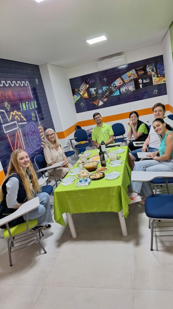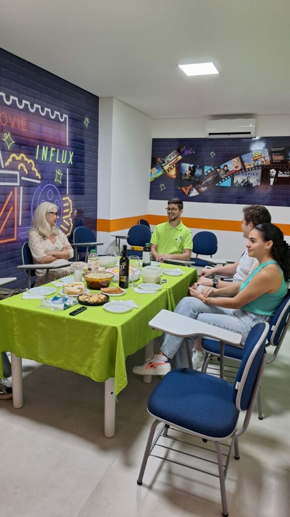 Os participantes aproveitaram atividades comunicativas em inglês, momentos de interação e troca cultural, tudo de forma leve, descontraída e envolvente.