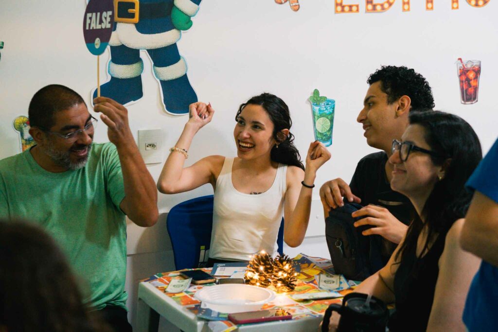A inFlux Joinville Centro realizou uma Atividade Extra especial voltada aos alunos de Teens e Adults, proporcionando uma noite marcada por petiscos, brincadeiras e muita prática do inglês.