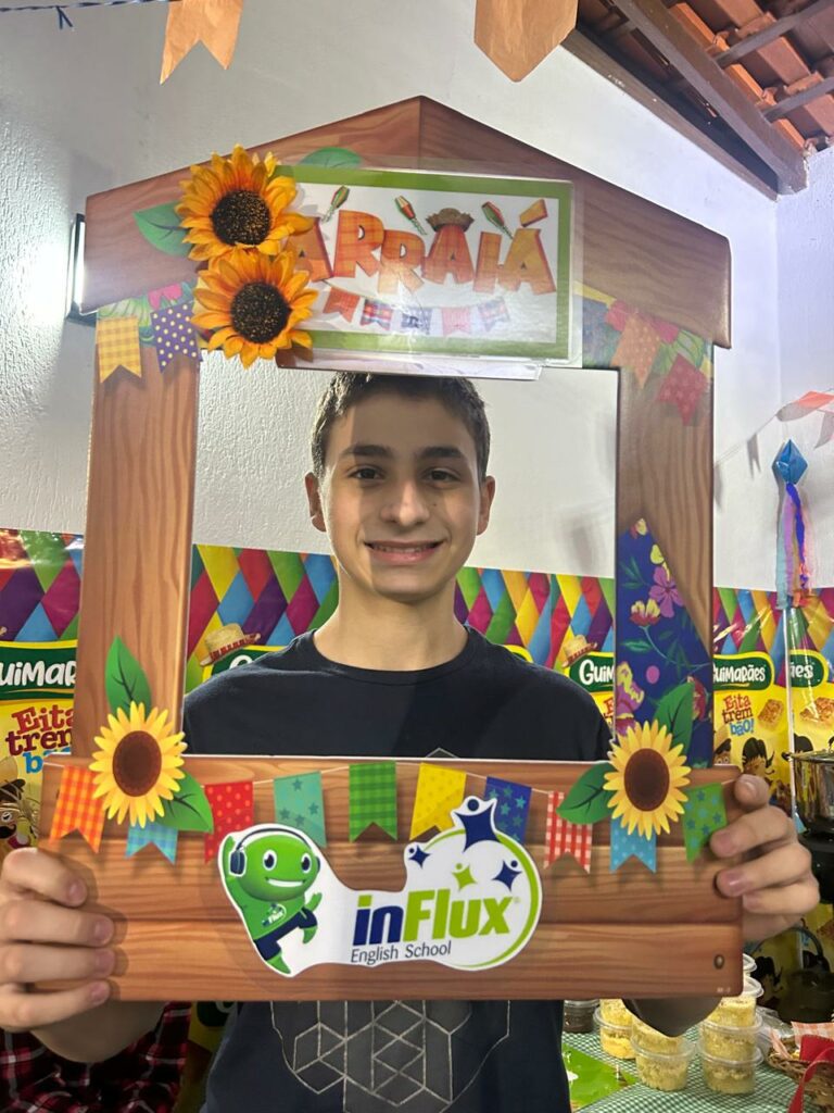 Esse trem tava bão demais da conta, sô! O arraiá da inFlux Londrina Dom Bosco foi um sucesso! Alunos de todas as idades puderam usar diversos chunks em inglês para pedir as guloseimas e participar das brincadeiras.