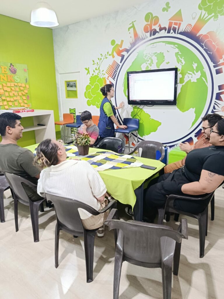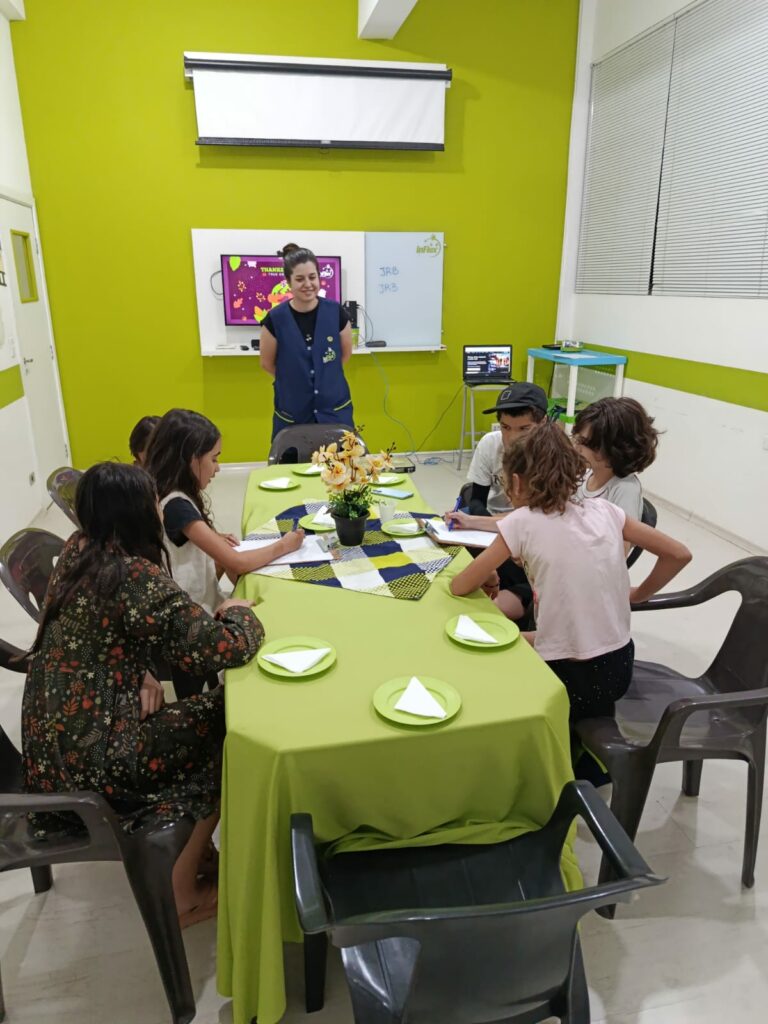 A noite também contou com momentos de interação em inglês, com atividades leves e envolventes que permitiram aos alunos praticarem o idioma de forma natural enquanto aproveitavam o encontro.