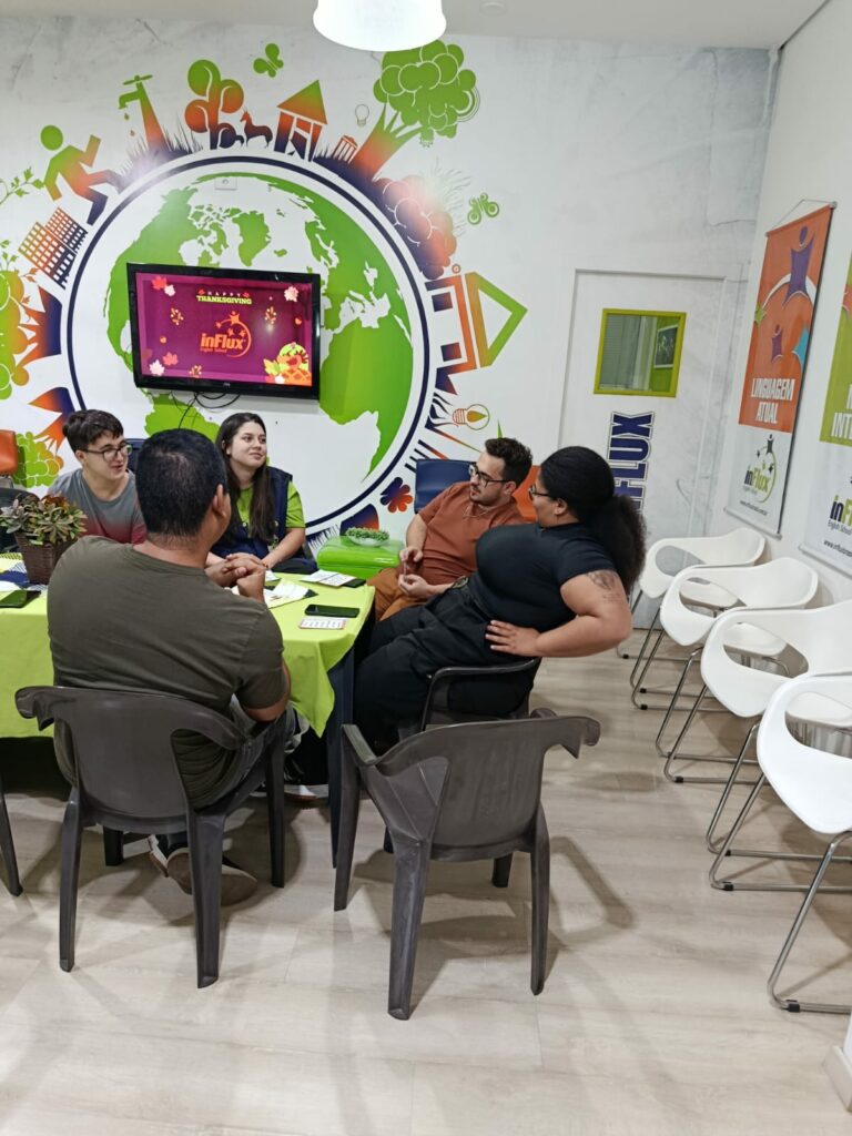 O Thanksgiving Dinner da inFlux Maringá Centro foi uma noite especial, repleta de conexão, cultura e muita gratidão. Os alunos da inFlux Maringá Centro chegaram trazendo pratos deliciosos — doces, salgados e receitas de família — compondo uma mesa coletiva que ficou incrível.