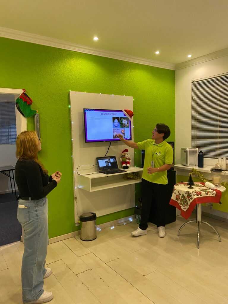 Durante a atividade, os alunos aprenderam sobre a receita e a história de uma bebida típica dessa época do ano nos Estados Unidos e também puderam experimentar o tradicional eggnog. Tudo aconteceu em um ambiente descontraído, que favoreceu a interação e a prática do inglês de forma natural e envolvente.