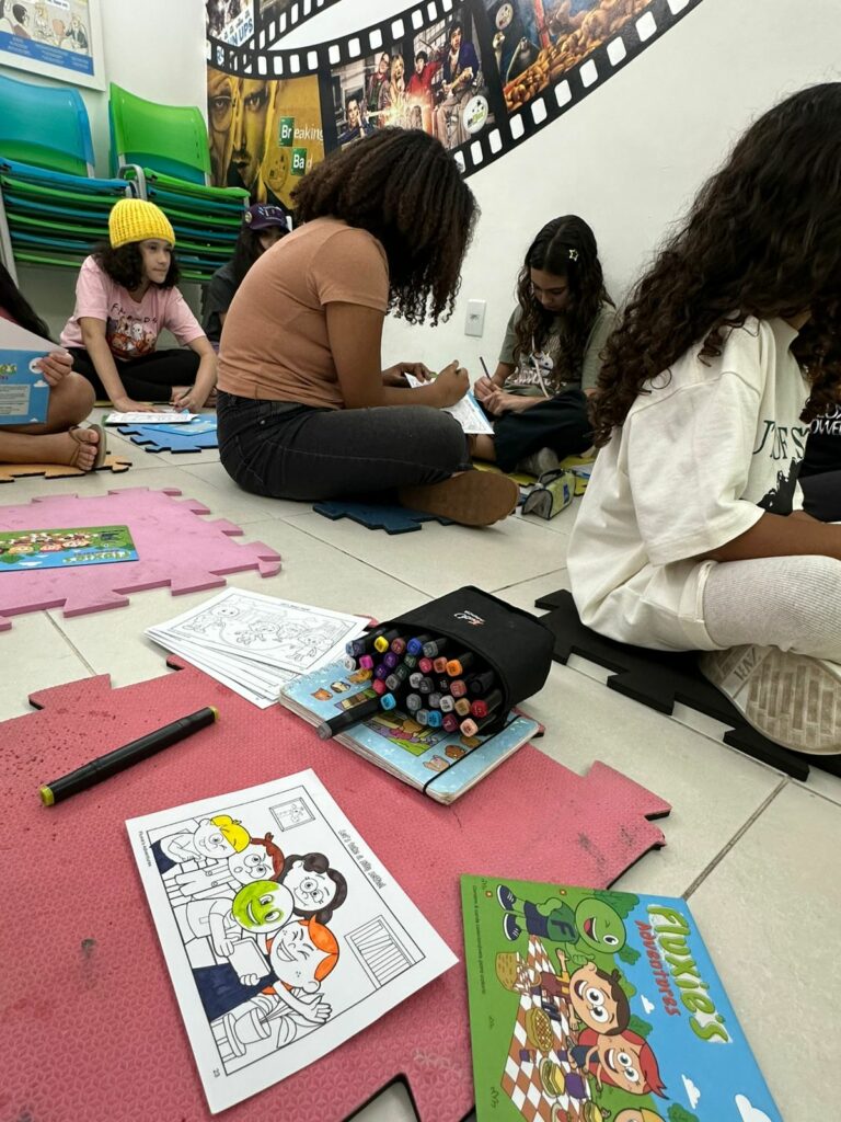 Foi confeccionado um material ilustre, inspirado em Bobbie Goods, com a marca do Fluxie e seus amigos! As crianças decoraram tudo da forma mais criativa e caprichada, aprenderam chunks de cada card, praticaram brincando de mímica… foi demais! Cada atividade mais bonita do que a outra.