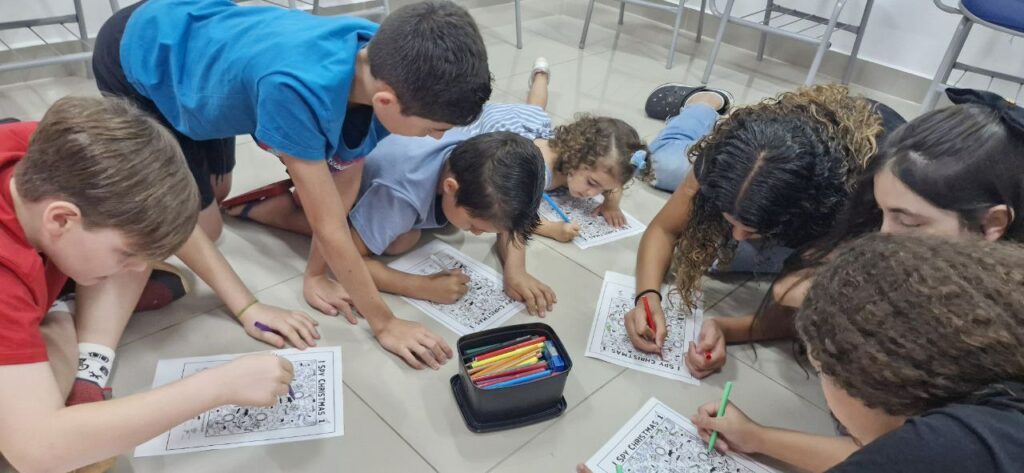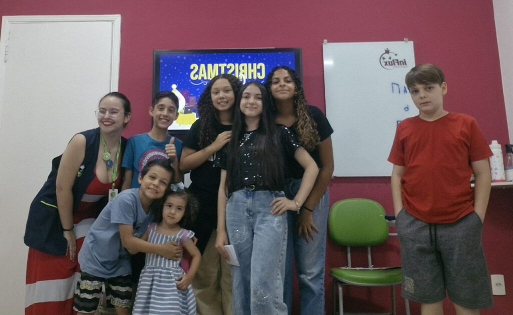 A inFlux Salto realizou uma Atividade Extra de Natal com os alunos Kids, em um momento cheio de alegria e brincadeiras para entrar no clima de férias.