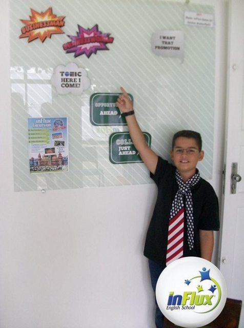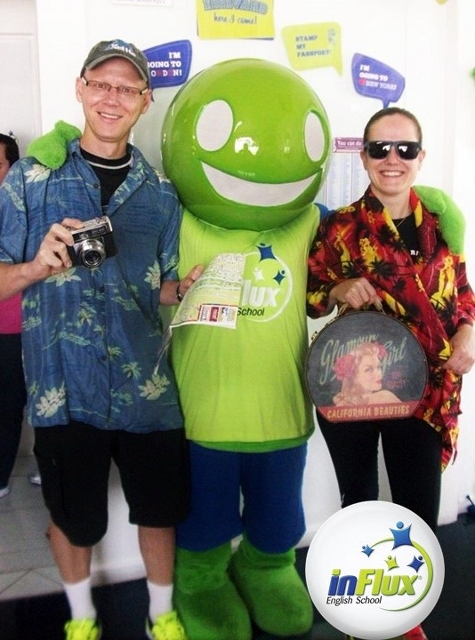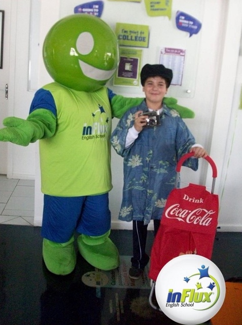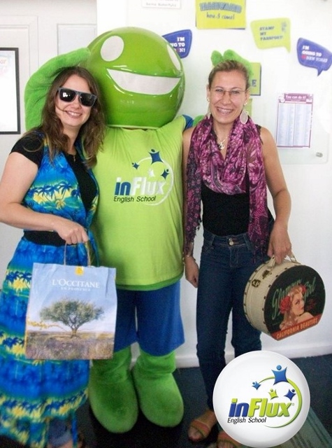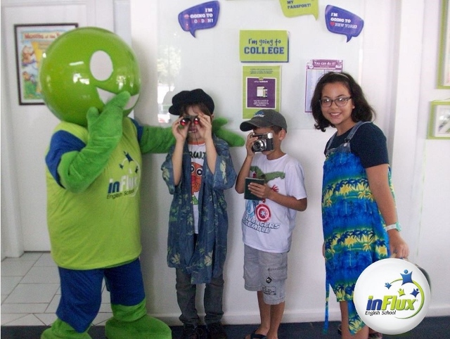 Os alunos foram recepcionados pelo mascote Fluxie, que estava entregando um pirulito para cada aluno, e estava presente no início de todas as aulas para tirar fotos com os alunos. Eles também foram surpreendidos com um delicioso lanche nos intervalos das aulas. Além disso, cada aluno recebeu um docinho dois-amores que significa a relação de união e troca da escola com o aluno. Para fechar, os alunos tiraram fotos representando o seu objetivo para aprender inglês, seja para o turismo, estudos ou negócios, cada objetivo tinha seus objetos e trajes para representá-los, e os alunos adoraram e se divertiram muito nesse início das aulas.