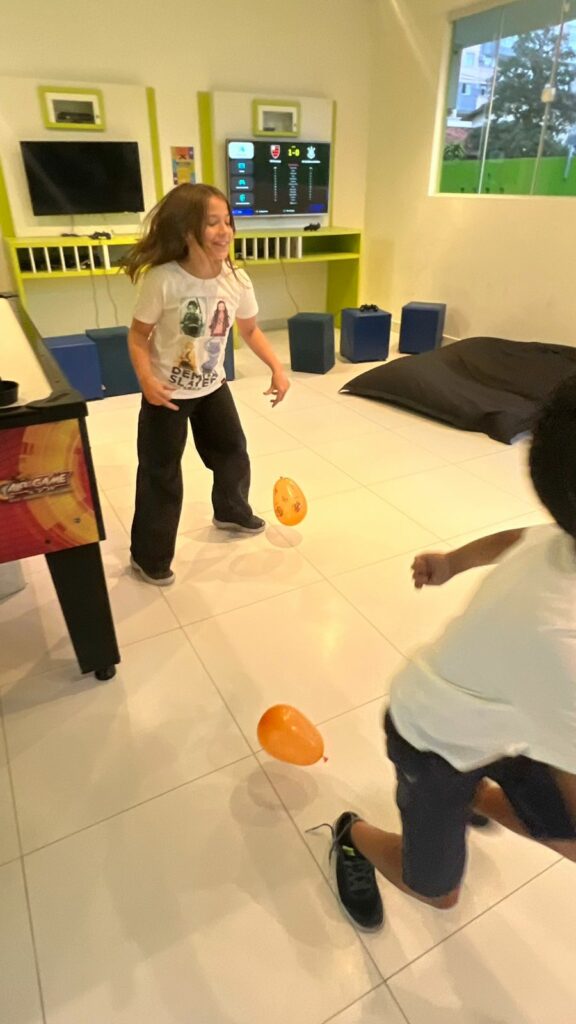 A atividade proporcionou prática de inglês de maneira natural e divertida, além de promover integração entre os alunos.