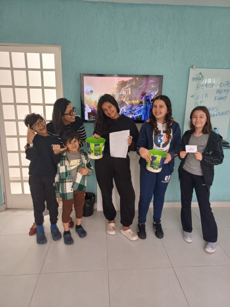 A atividade possibilitou o desenvolvimento do inglês em um contexto real e divertido, além de oferecer uma experiência cultural enriquecedora, fortalecendo ainda mais a conexão dos alunos com a escola e com o idioma.