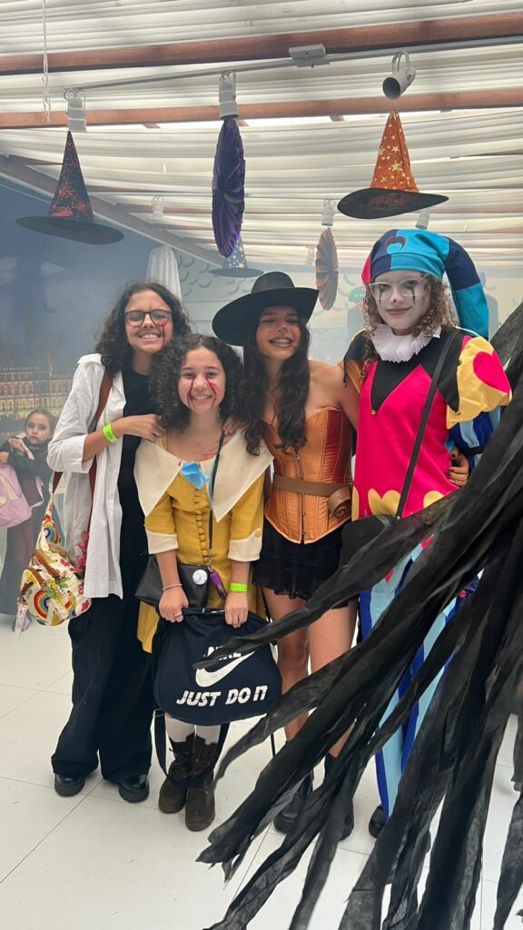 A festa reuniu crianças, adolescentes e adultos em uma noite horripilante, cheia de diversão, fantasias, comidas temáticas e muita animação. Teve de tudo: corredor do susto, labirinto do medo e muitos momentos que ficarão na memória!