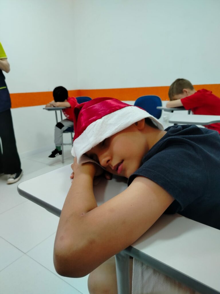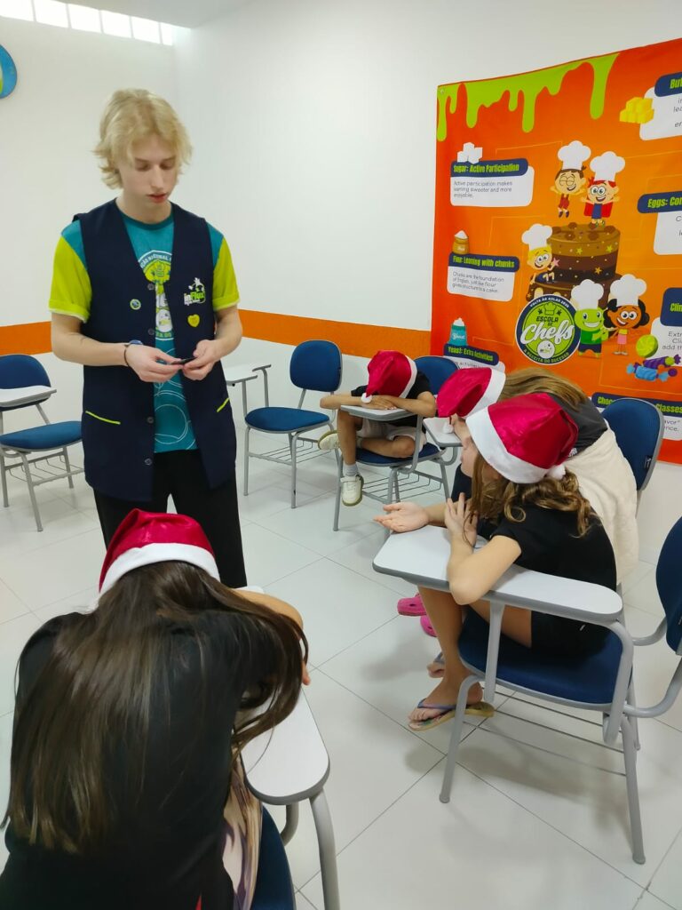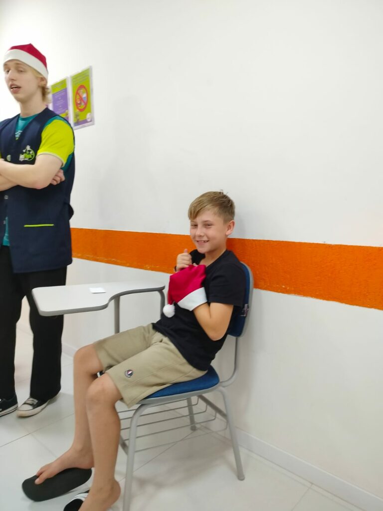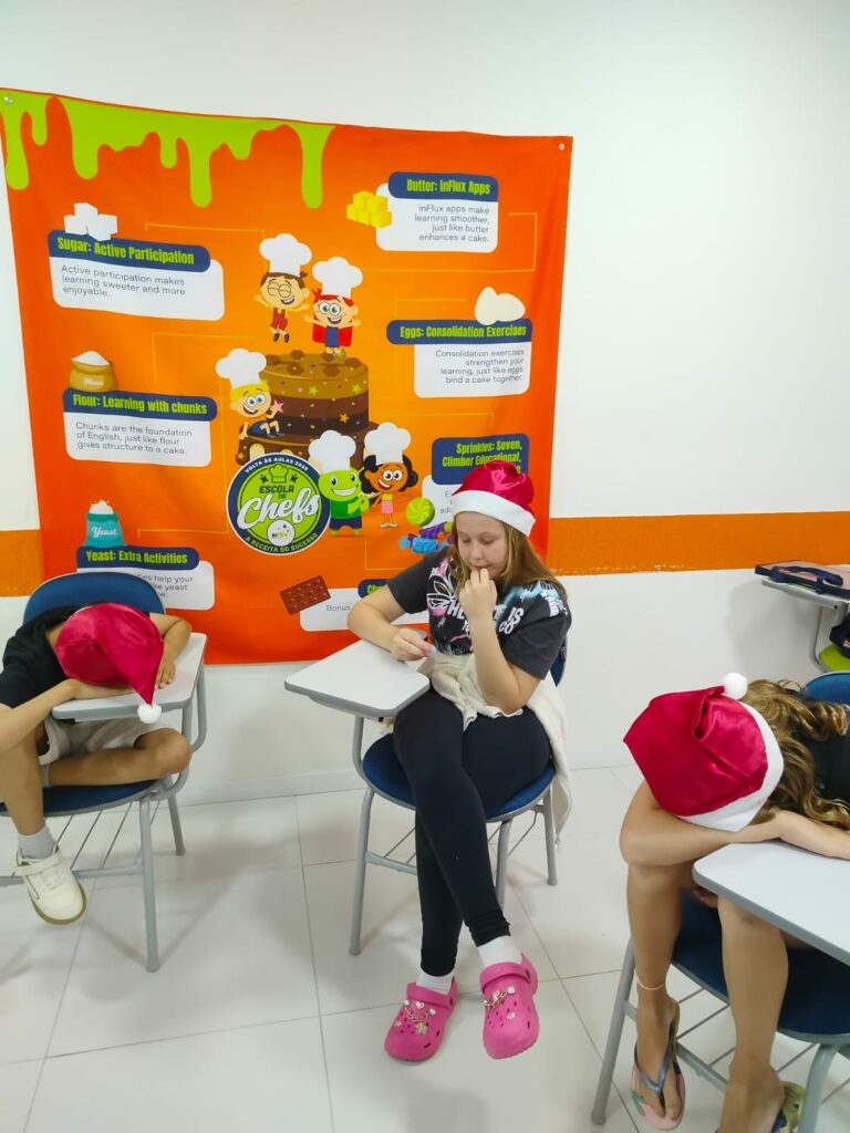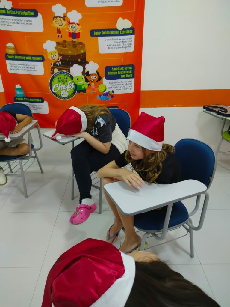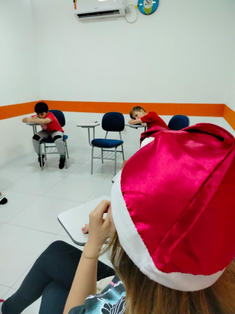 A inFlux Três Passos realizou uma Atividade Extra temática de Natal, repleta de interação e prática de inglês. Os alunos participaram de um jogo da memória com frases e imagens, da brincadeira The Grinch Among Us e do desafio What’s in Santa’s Bag?, no qual tentaram adivinhar itens escondidos na sacola do Papai Noel.
