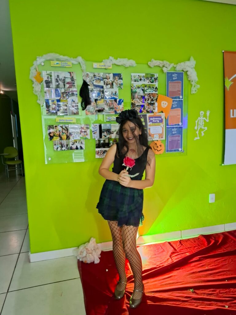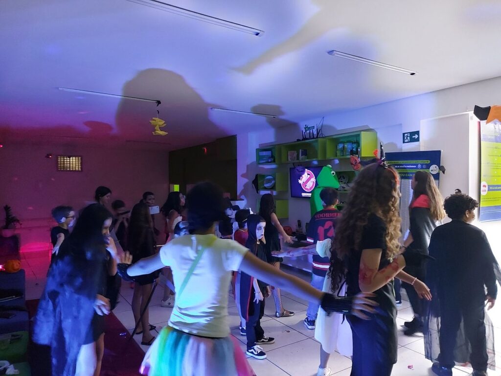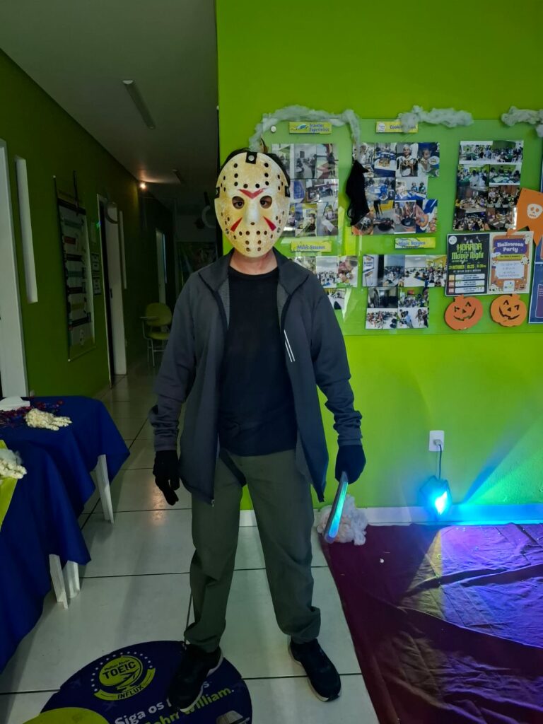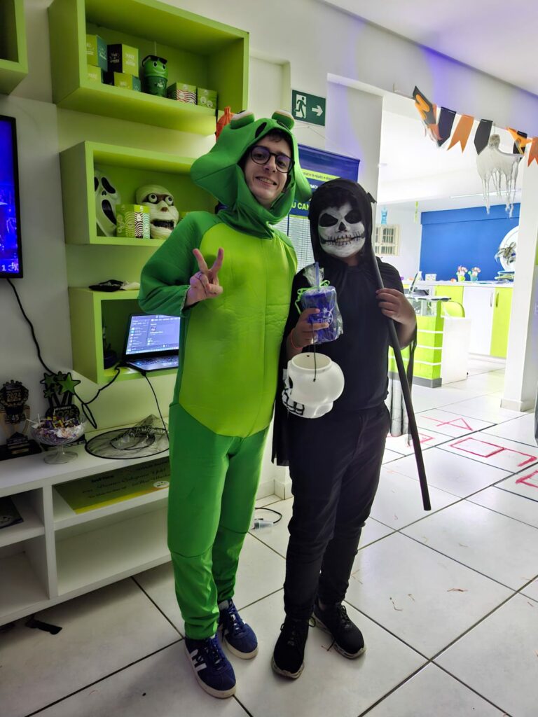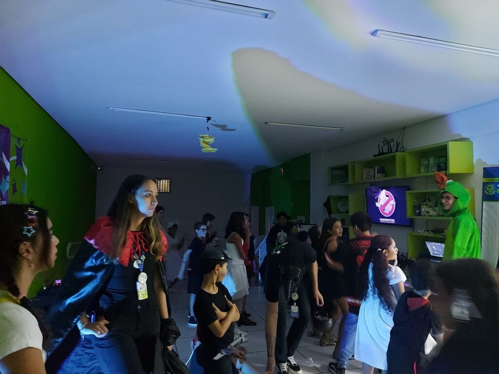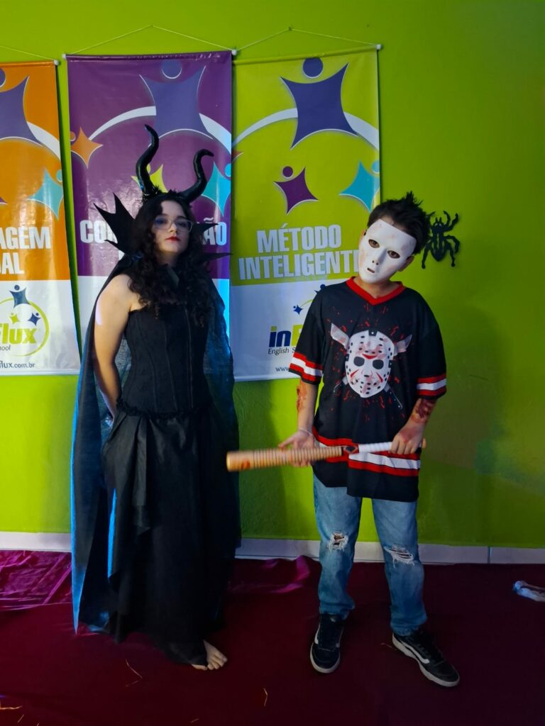 Tivemos dois eventos rolando ao mesmo tempo: para as turmas Kids e Juniors, a noite foi de pura energia, com brincadeiras, concurso de fantasias, doces, bingo e muita risada. Já o pessoal Teens e Adults mergulhou no clima com um concurso de fantasias cheio de criatividade e uma sessão de filmes de terror que foi demais!