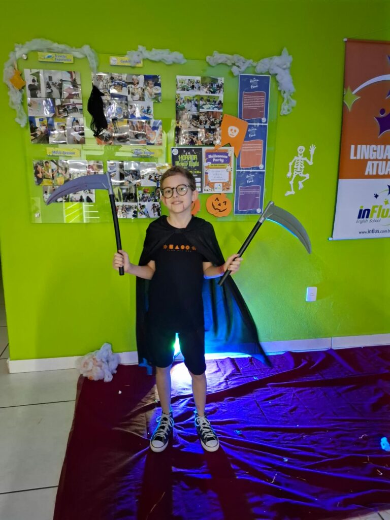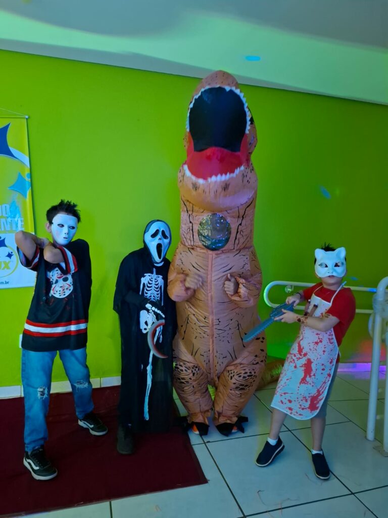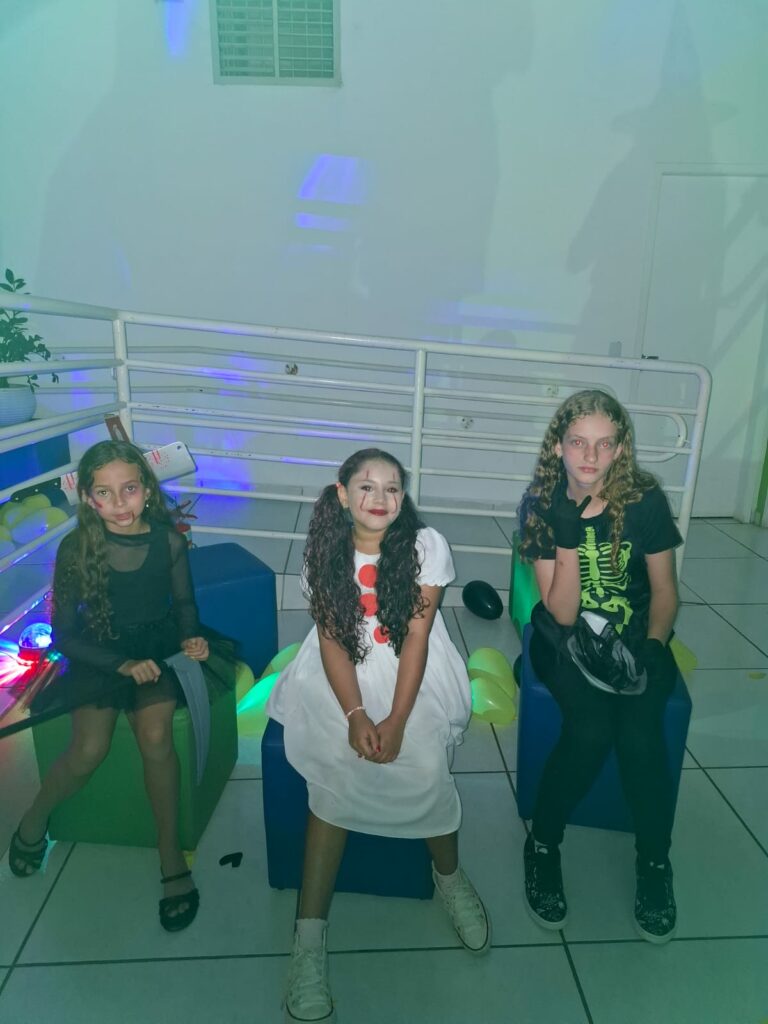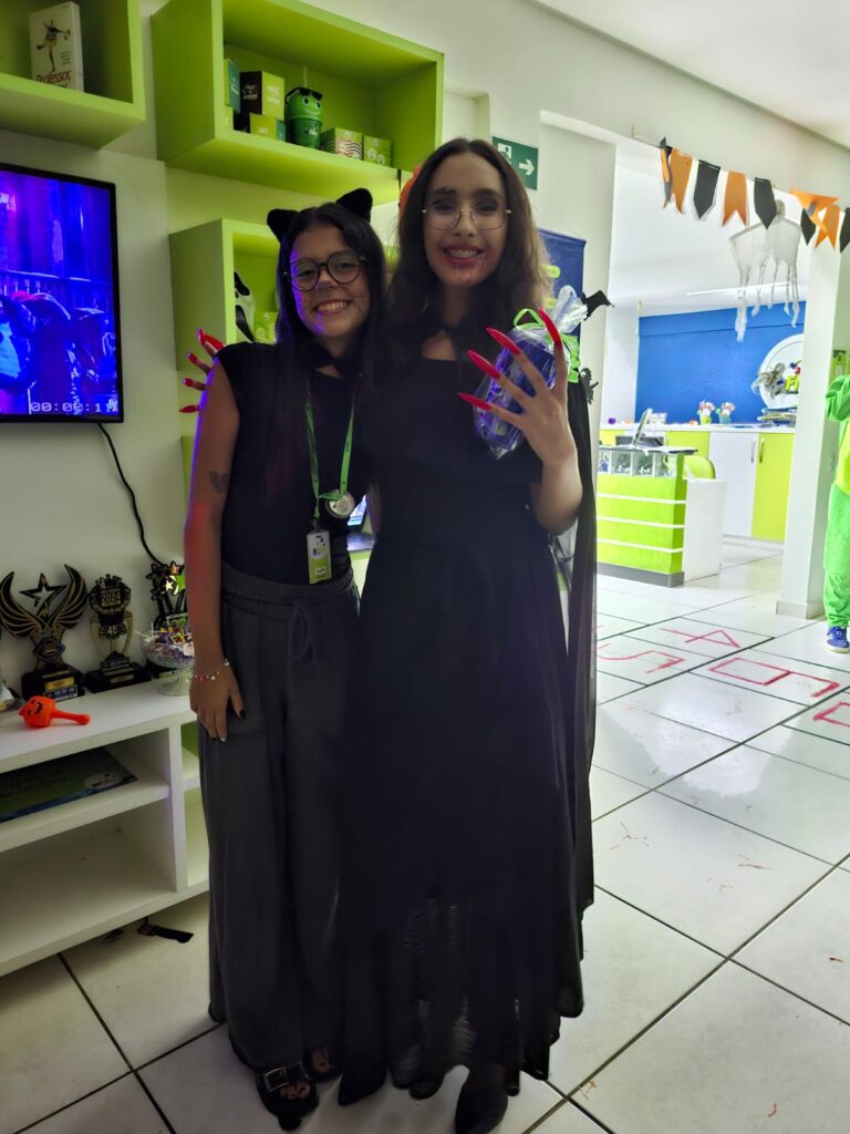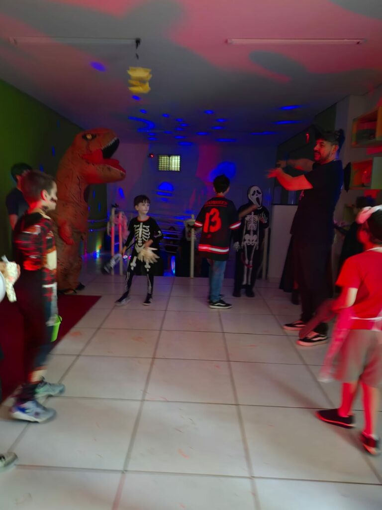 Tivemos dois eventos rolando ao mesmo tempo: para as turmas Kids e Juniors, a noite foi de pura energia, com brincadeiras, concurso de fantasias, doces, bingo e muita risada. Já o pessoal Teens e Adults mergulhou no clima com um concurso de fantasias cheio de criatividade e uma sessão de filmes de terror que foi demais!