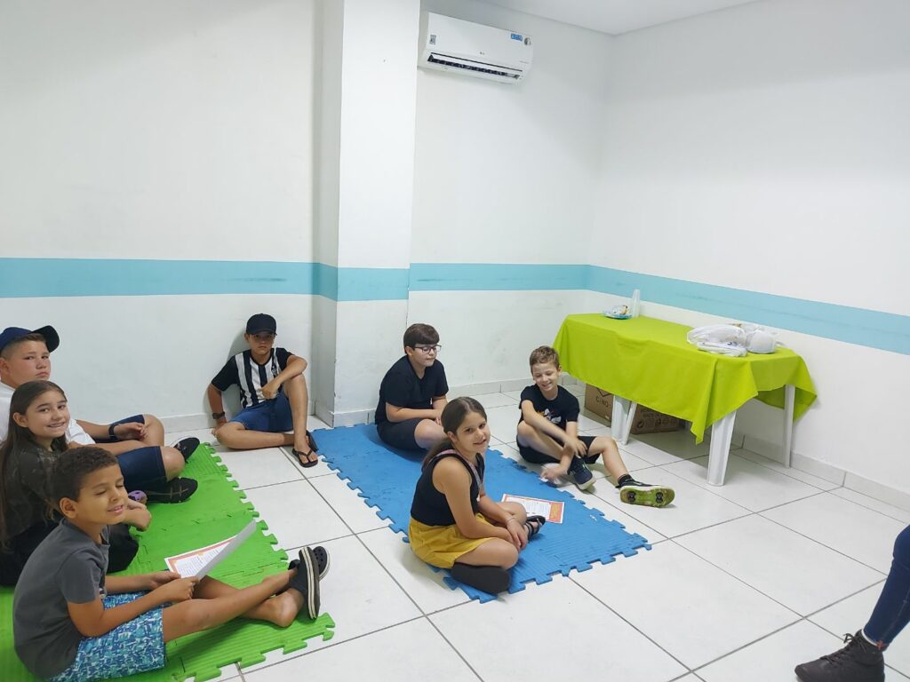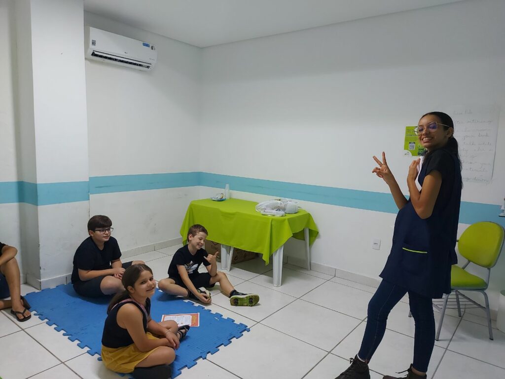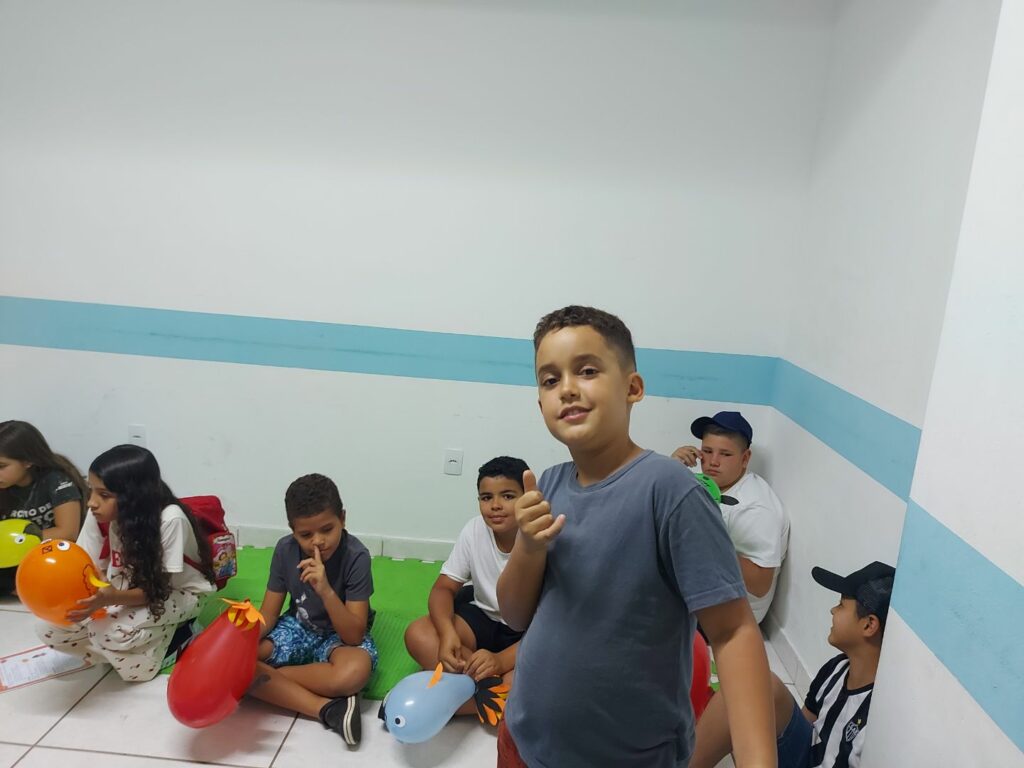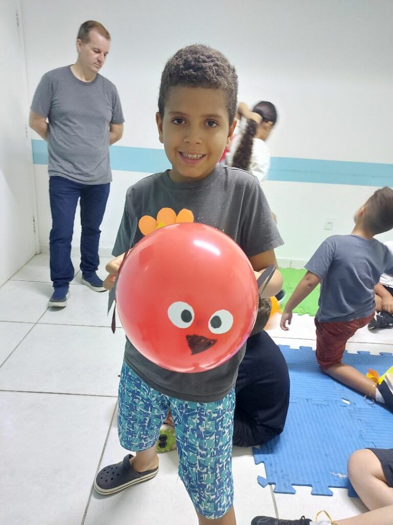 Em um momento repleto de energia, os alunos participaram da brincadeira “Turkey Tag” — uma versão divertida e adaptada do tradicional pega-pega, incentivando a interação em inglês e estimulando a imaginação.