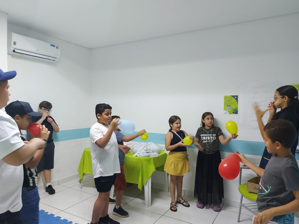 Em um momento repleto de energia, os alunos participaram da brincadeira “Turkey Tag” — uma versão divertida e adaptada do tradicional pega-pega, incentivando a interação em inglês e estimulando a imaginação.