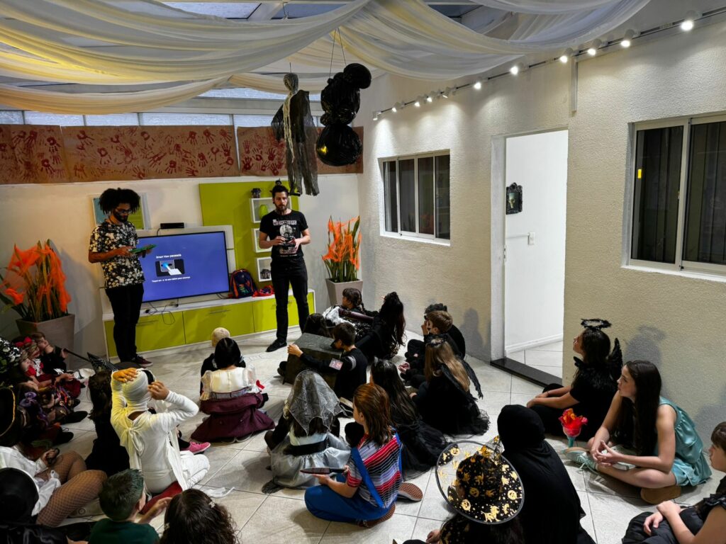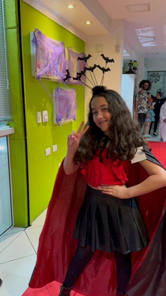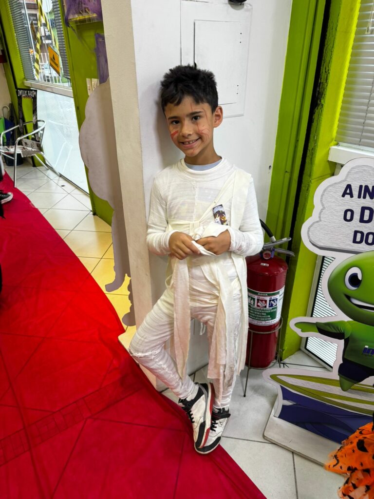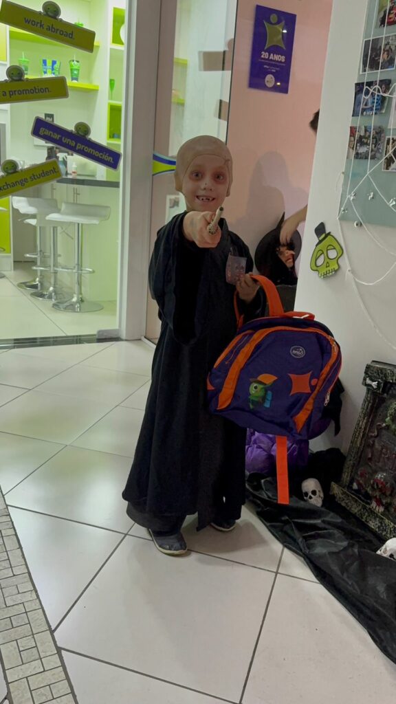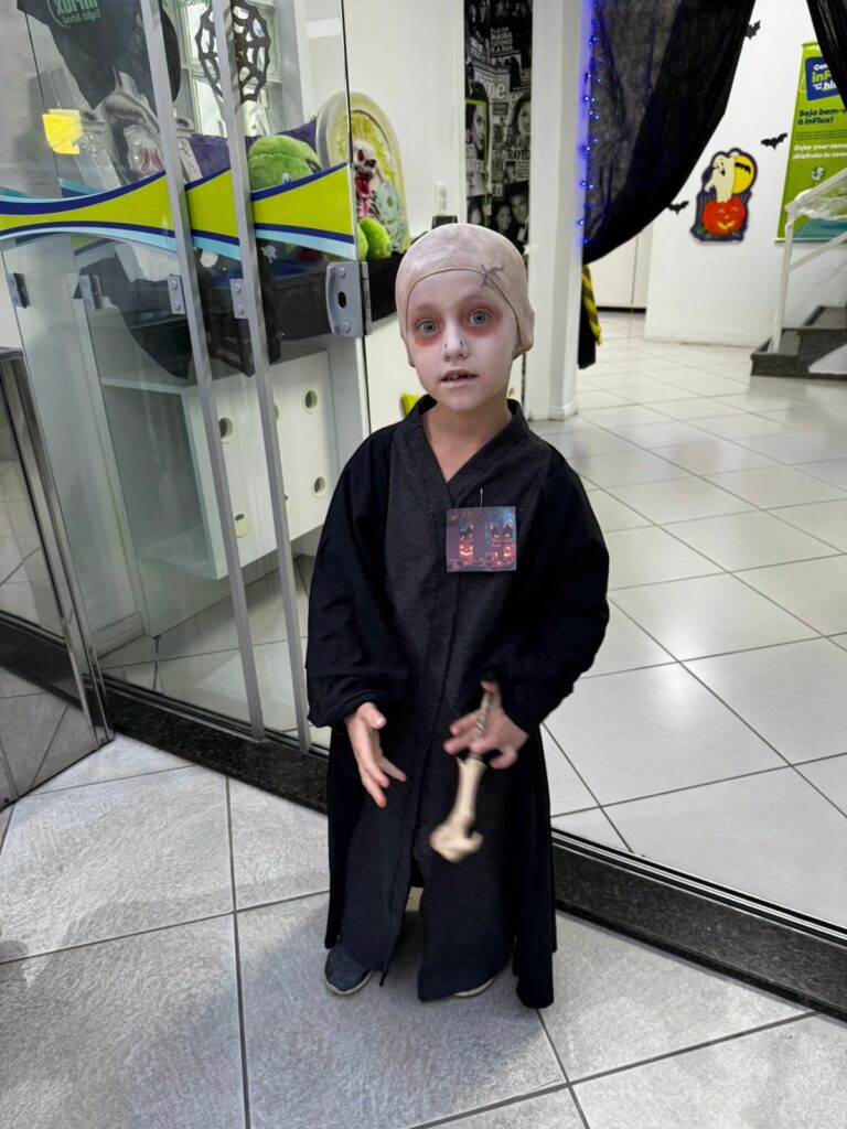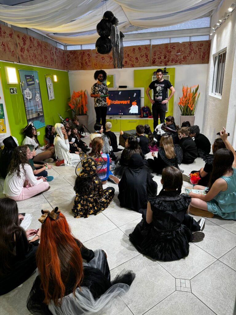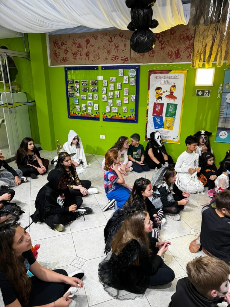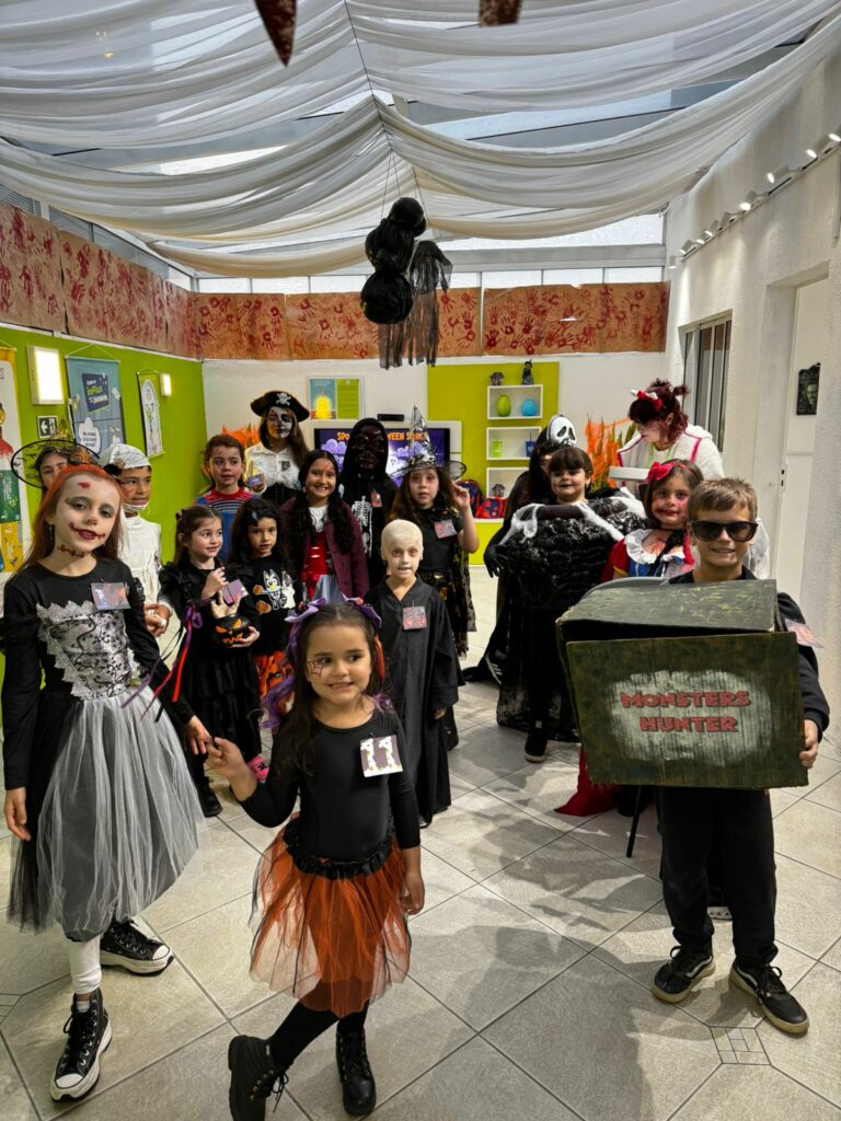 Os alunos estavam lindos e horripilantes, se divertiram muito, aprenderam palavras novas em inglês e aproveitaram cada momento.