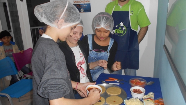 A última sexta-feira, dia 03/06, foi dia de muita diversão na unidade norte da inFlux Joinville. Os alunos Kids participaram do evento Masterchef Junior, onde competiram preparando pizzas que foram apresentadas aos jurados e julgadas de acordo com aparência e sabor!