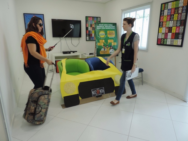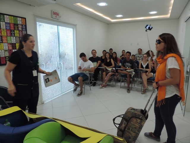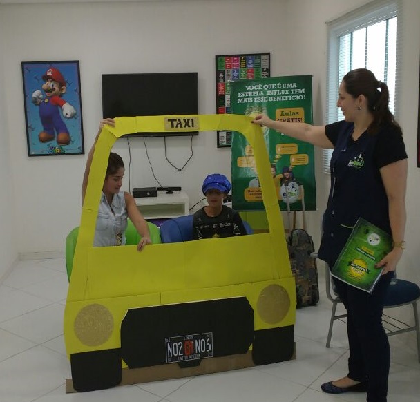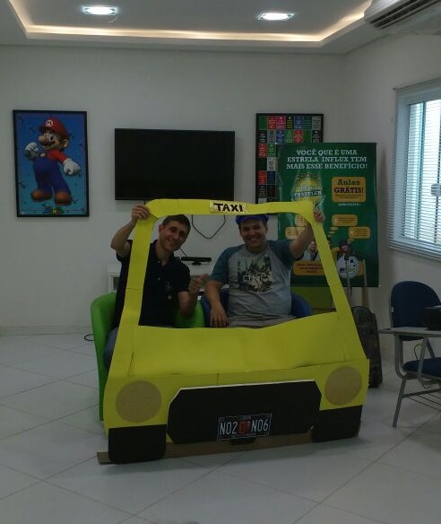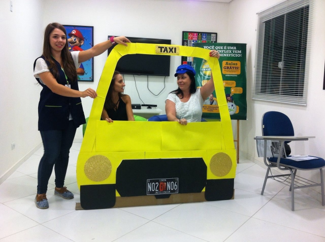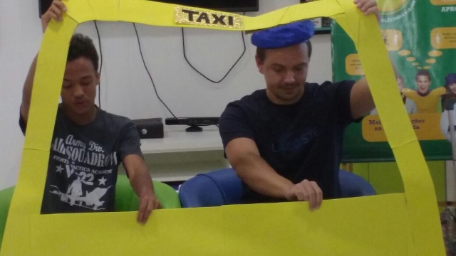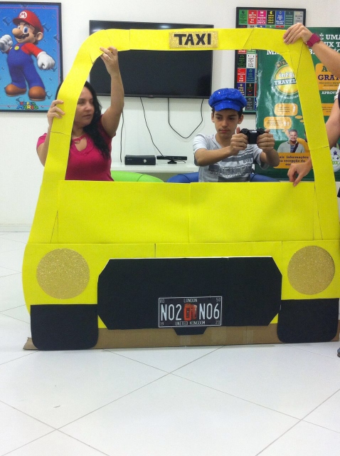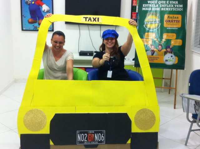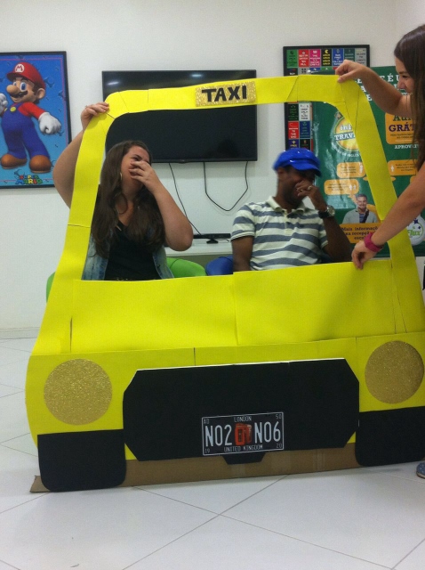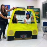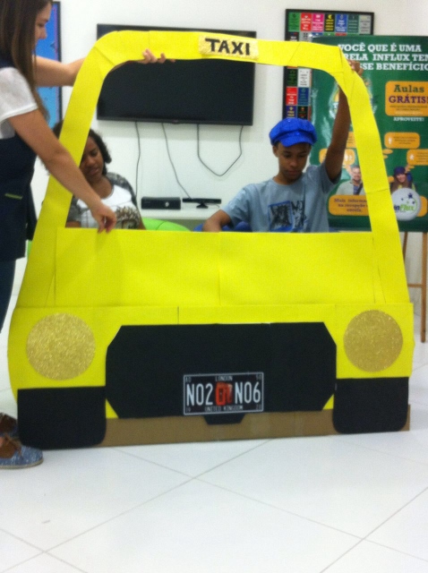 Baseando-se em situações de viagem, nossos alunos tiveram a oportunidade de praticar inglês de uma forma lúdica e divertida! Teve até role-play simulando serem passageiros e taxistas, treinando o conteúdo da aula. Vanesa, a coordenadora pedagógica da unidade explica: “Nossa ideia é criar uma experiência que eles com certeza vão lembrar quando estiverem em uma situação real”.