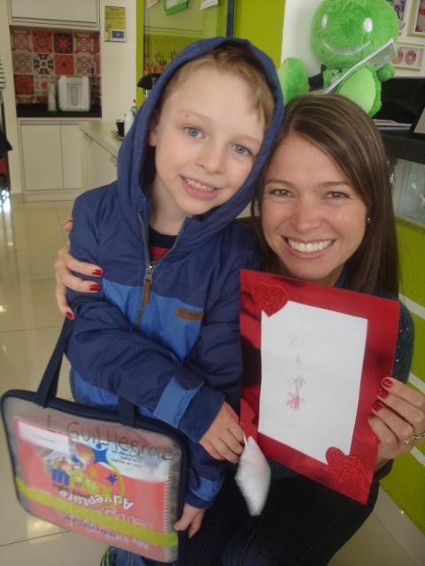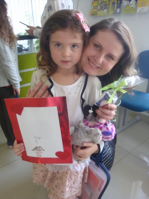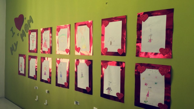 As crianças das turmas de Babies e Backpack surpreenderam as mamães com uma singela apresentação musical, em seguida elas foram até a galeria que foi preparada com retratos que os alunos fizeram de suas mães.