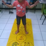 Essa aula foi bem empolgante, pois a teacher Lu trouxe para a turma um jogo bem tradicional: a amarelinha! O objetivo do jogo era aprender os números e diferentes movimentos do corpo!