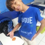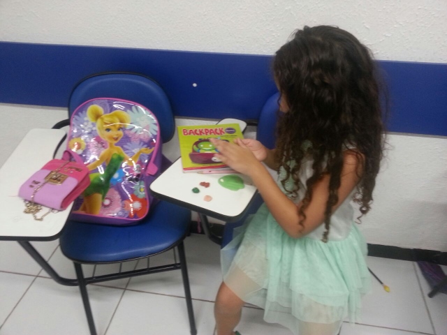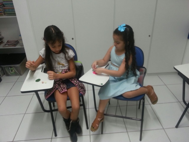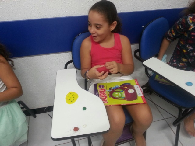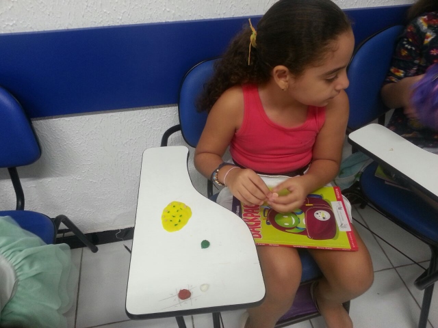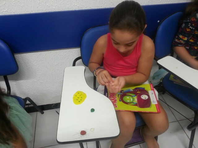 A turma está trabalhando com o assunto de comidas, então a teacher propôs, no dia 18/05, fazer pizza… Mas não de verdade. Ela trouxe massa de modelar de diferentes cores e assim cada aluno fez sua pizza com o sabor escolhido.