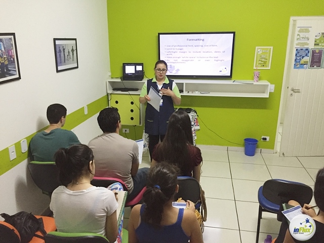 No último dia 08 de Abril, os alunos da inFlux Dourados tiveram a grande oportunidade de aprender a montar seu resume (currículo) no modelo americano, bem como a preencher uma job application para um cargo almejado.