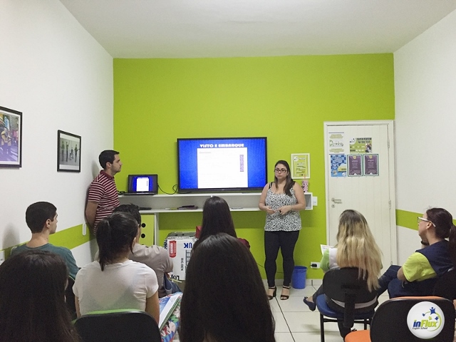 Tivemos a participação da gerente comercial da Intercultural (Holiday intercâmbios e turismo), Natália Ferrari, que apresentou aos alunos o programa Work Experience USA, e todo o processo de envio de currículo até a assinatura do contrato de emprego com uma empresa americana. Os alunos se interessaram bastante por essa oportunidade de trabalho fora do país e, com certeza, irão batalhar ainda mais para que esse sonho se torne realidade.