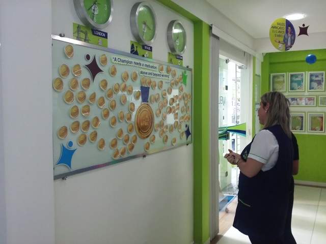 E para surpreender nossos alunos e alunas, aproveitando que estamos no clima das Olimpíadas, recepcionamos a todos convidando-os a encontrar a sua Medalha Dourada! Foi gratificante como todos curtiram!