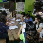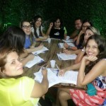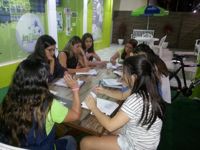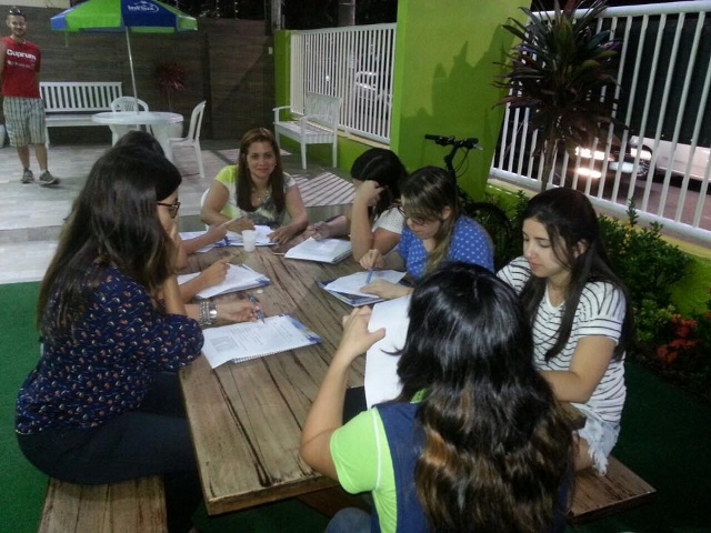 O tema da aula foi “Fiestas y reuniones”, então a professora Angélica se reuniu na área externa da escola para estudar uma estrutura muito importante no espanhol: o “habria hecho, habria dicho, etc”