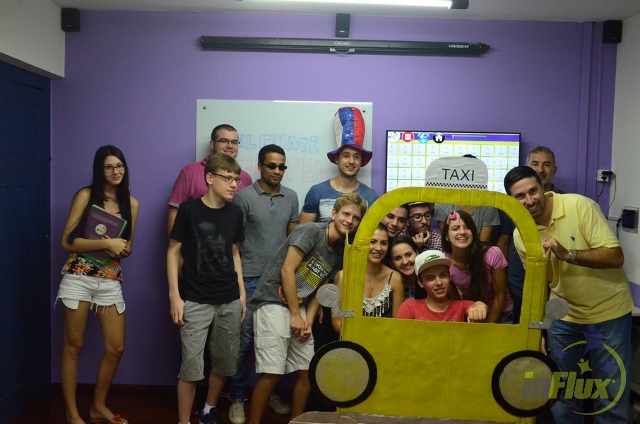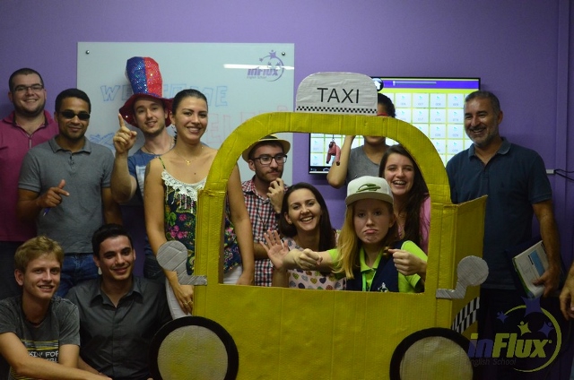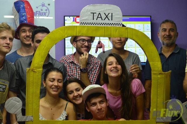 No dia 04/04, tivemos a prática “In a taxi” em que os alunos puderam praticar muito as expressões que aprenderam para vivenciar esta situação e, claro, se divertiram muito enquanto aprendiam.