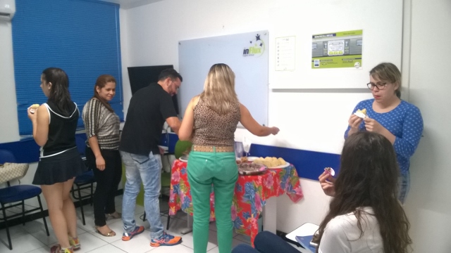 Teve muitas delícias que foram preparadas carinhosamente pelos alunos como: bolo de tapioca com doce de leite, brigadeiros, pão delícia, sucos, pipoca e frutas! Como todos estávamos bem animados, nos ariscamos a dar aquela dançadinha ao ritmo do “forro pé de serra” com o nosso querido coordenador Fábio.