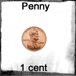 a/one penny = 1 centavo de dólar